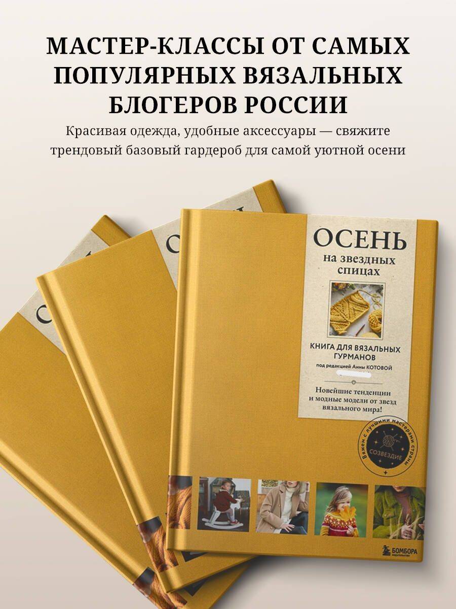 Уникальная книга в уникальной серии! Впервые авторские вязальные проекты от лучших мастеров России тщательно отобраны авторитетным экспертом, мастером, автором бестселлеров по вязанию Анной Котовой и представлены в одной книге! Самые авторитетные мастера-блогеры, чье имя на слуху российских и не только мастериц-вязальщиц, по чьим мастер-классам обучаются вязать тысячи и тысячи учеников во всем мире, предоставили свои роскошные авторские модели в эту красивую ОСЕННЮЮ книгу. Осенью хочется ярких красок, тепла и уюта, и совсем не хочется шарить по интернету в поисках того, чтобы связать себе, детям, мужу... В этой книге вы найдете красивые проекты на любой вкус, от джемперов до шапок для взрослых и детей. И создадите для них стильный, яркий, уютный гардероб, в котором так хорошо гулять золотой осенью! Вы и ваша семья достойны самого лучшего. Готовимся к осени вместе со звездами российского вязания! О серии «СОЗВЕЗДИЕ. Вяжем с лучшими мастерами страны» Книги для вязальных гурманов, для которых вязание - творчество и образ жизни. Для тех, кто ценит стиль и не готов сливаться с толпой. Тематические сборники авторских моделей и мастер-классов от самых популярных вязальных блогеров России, собранных воедино автором четырех бестселлеров, блогером с огромной аудиторией и множеством учеников Анной Котовой. Сливки современных модных тенденций, эксперты вязального мира, стильные дизайнерские модели с учетом последних фэшн-тенденций. Темы книг рождаются по рейтингам запросов аудитории в соцсетях. Книги серии интерактивные, дополнены QR-кодами со ссылками на видеоуроки или страницы авторов, обеспечивая обратную связь с читателем. Современное серийное оформление с возможностью визуально объединить серию на полке, собирая коллекцию.| Издательство | ООО "Издательство "Эксмо" |