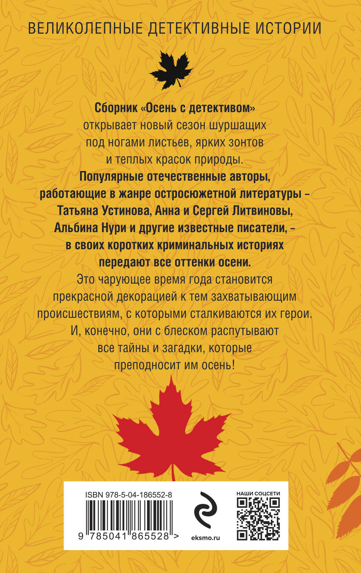 Cборник «Осень с детективом» открывает новый сезон шуршащих под ногами листьев, ярких зонтов и теплых красок природы. Популярные отечественные авторы, работающие в жанре остросюжетной литературы: Татьяна Устинова, Анна и Сергей Литвиновы, Альбина Нури и другие известные писатели, - в своих коротких криминальных историях передают все оттенки осени. Это чарующее время года становится прекрасной декорацией к тем захватывающим происшествиям, с которыми сталкиваются их герои. И, конечно, они с блеском распутывают все тайны и загадки, которые преподносит им осень! Детективные рассказы давно и заслуженно пользуются огромной популярностью у читателей. Хитроумные преступления, стремительное расследование, головокружительная развязка - и все это на нескольких страницах! В наши дни традиции Конан-Дойла, Честертона и Агаты Кристи продолжают хорошо известные и любимые писатели.| Издательство | ООО "Издательство "Эксмо" |