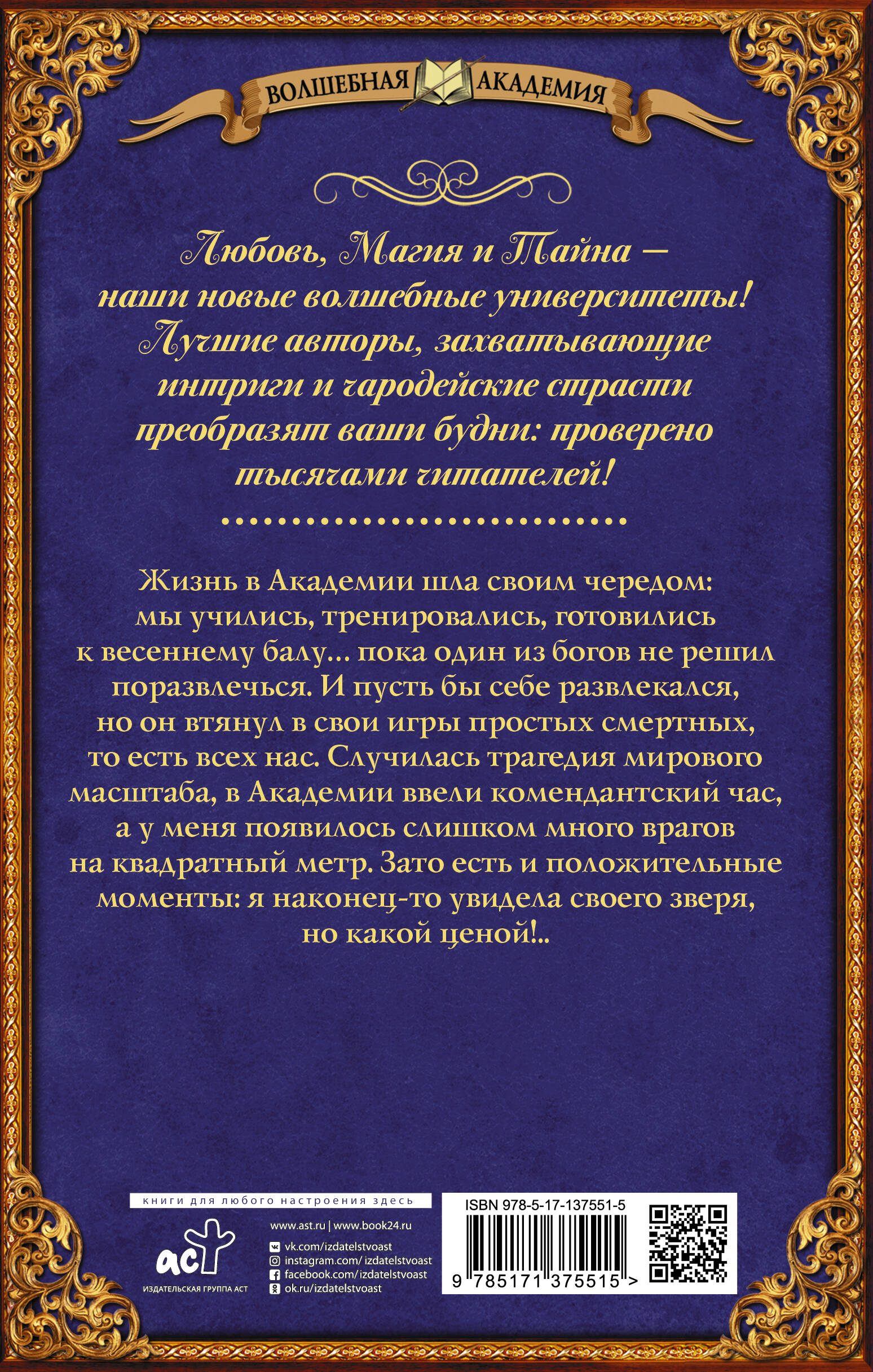 Жизнь в Академии шла своим чередом: мы учились, тренировались, готовились к весеннему балу… пока один из богов не решил поразвлечься. И пусть бы себе развлекался, но он втянул в свои игры простых смертных, то есть всех нас. Случилась трагедия мирового масштаба, в Академии ввели комендантский час, а у меня появилось слишком много врагов на квадратный метр. Зато есть и положительные моменты: я наконец-то увидела своего зверя, но какой ценой!..| Издательство | ИЗДАТЕЛЬСТВО "АСТ" |