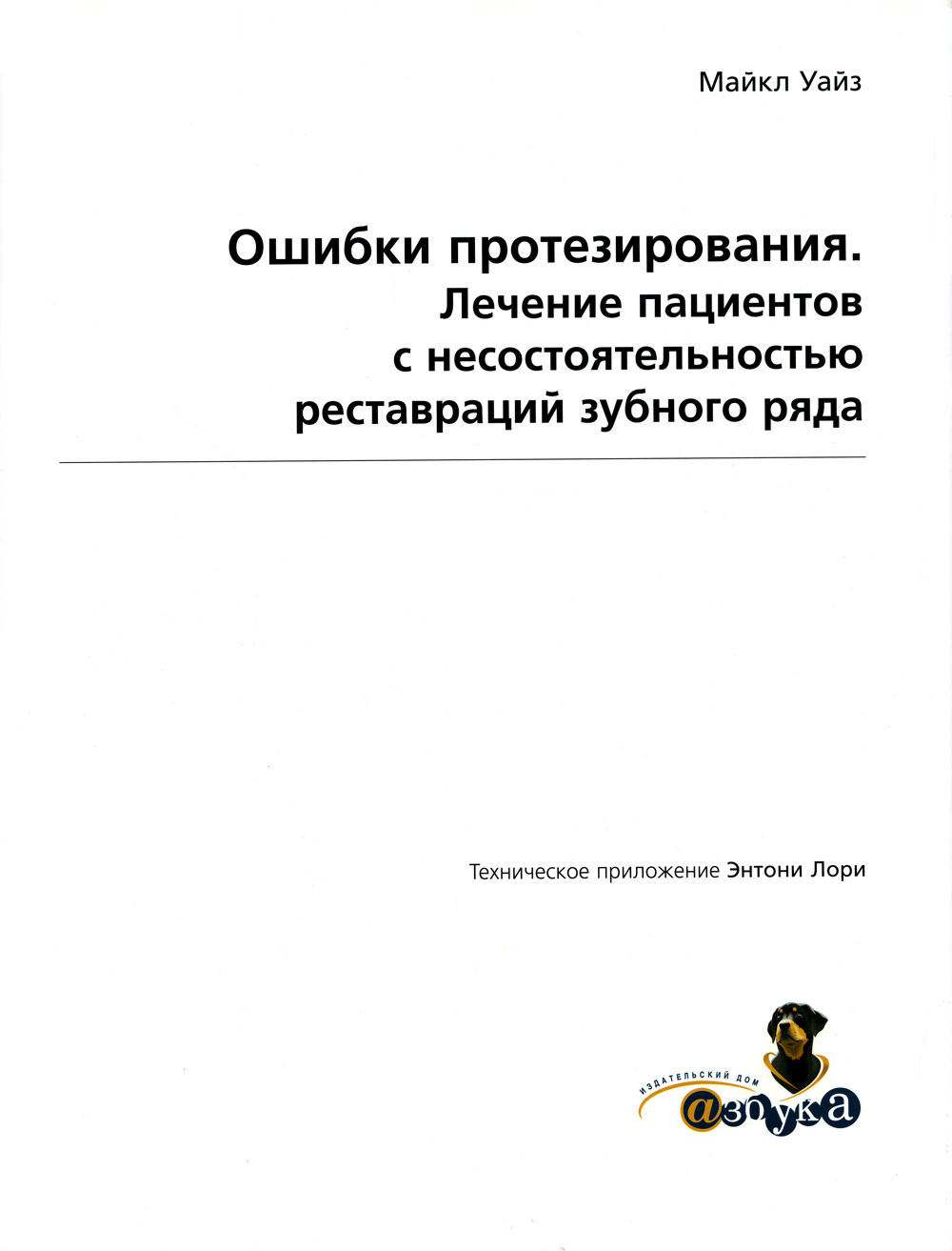 Аннотация: Ошибки протезирования. Лечение пациентов с несостоятельностью реставраций зубного ряда. Т. 1
