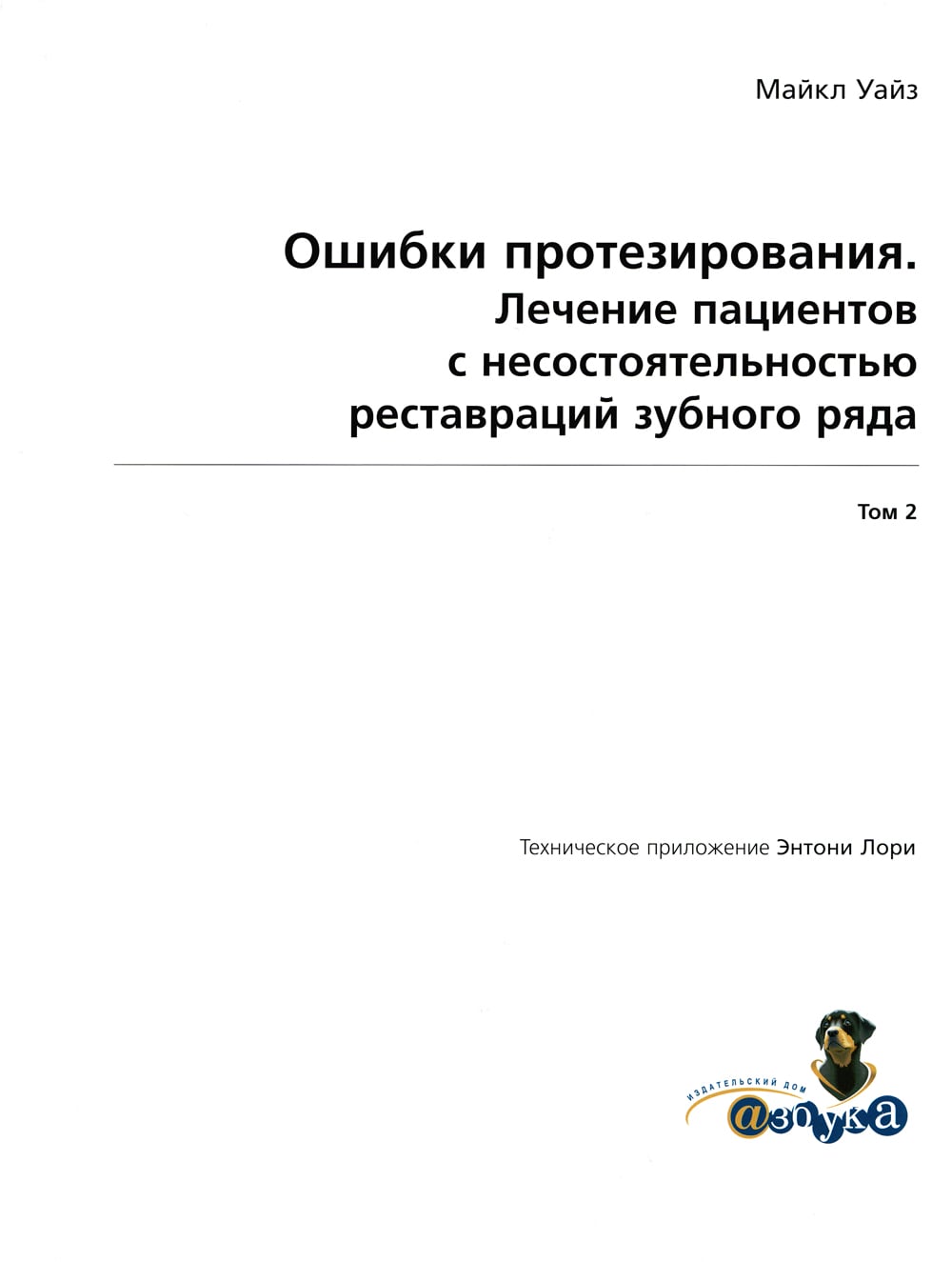 Аннотация: Ошибки протезирования. Лечение пациентов с несостоятельностью реставраций зубного ряда. Т. 2