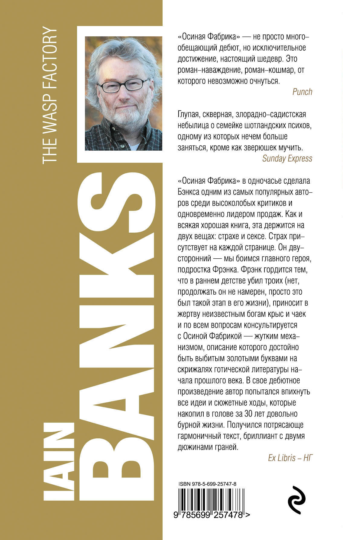 Знаменитый роман выдающегося шотландца, самый скандальный дебют в английской прозе последних десятилетий. Познакомьтесь с шестнадцатилетним Фрэнком. Он убил троих. Он - совсем не тот, кем кажется. Он - совсем не тот, кем себя считает. Добро пожаловать на остров, который стерегут Жертвенные Столбы. В дом, где на чердаке ждет смертоносная Осиная Фабрика.| Издательство | ООО "Издательство "Эксмо" |
