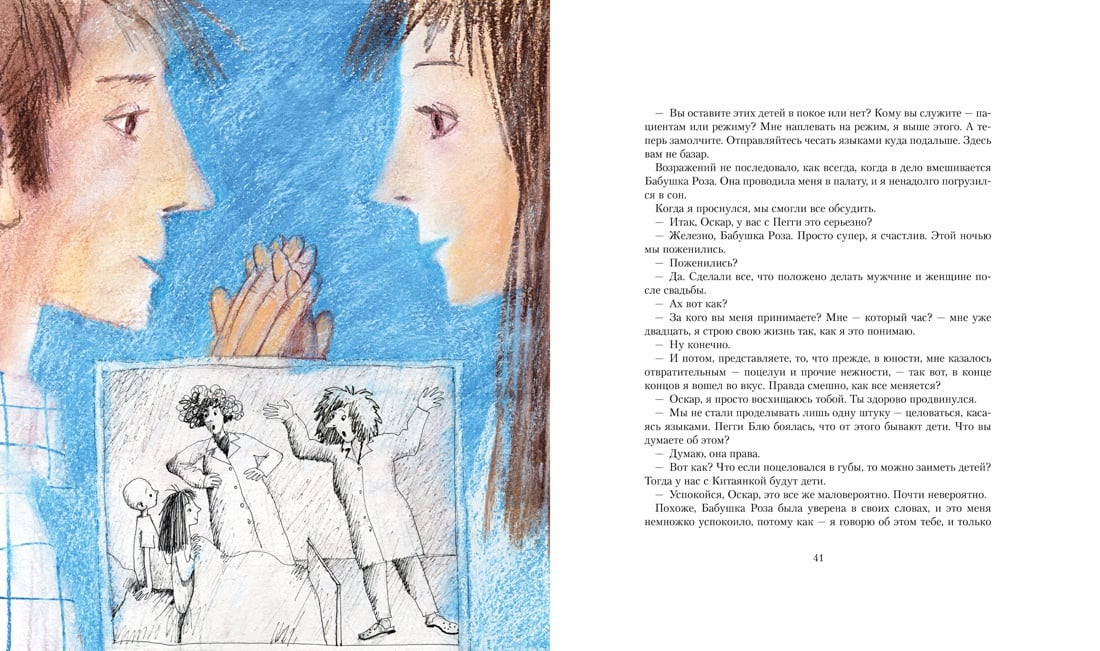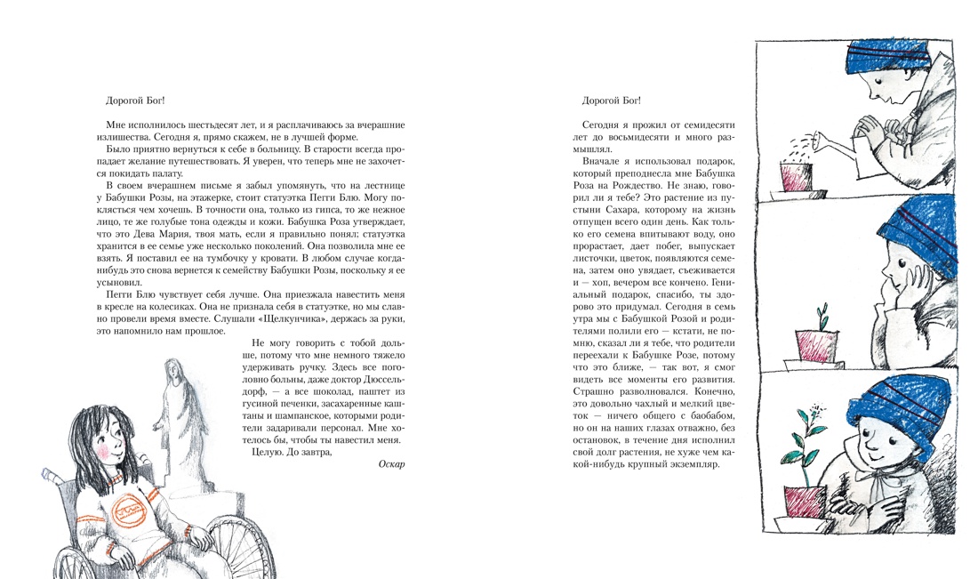 «Оскар и Розовая Дама» - трогательная и поэтичная повесть-притча, одиннадцать писем Богу от мальчика по имени Оскар. Одиннадцать смешных, подчас грустных, жизнелюбивых посланий. История о вдохновляющей силе дружбы, вере, ценности каждого прожитого дня и о том, как много любви и добра может вместить даже короткая жизнь. Книга оформлена замечательными рисунками Надежды Бугославской. За иллюстрации к «Оскару и Розовой Даме» художница награждена дипломом «Книга года 2020».| Издательство | Махаон |