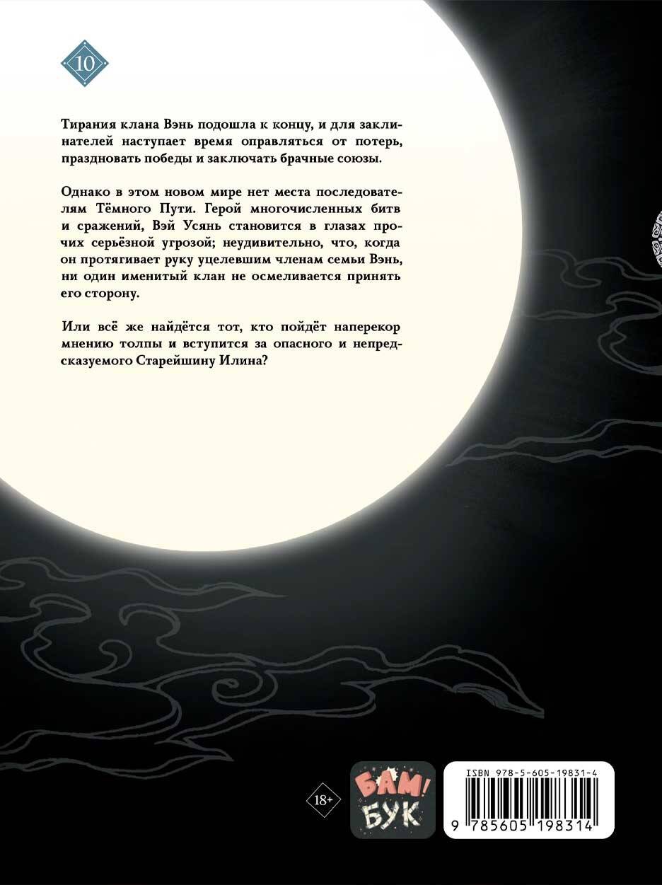 Тирания клана Вэнь подошла к концу, и для заклинателей наступает время оправляться от потерь, праздновать победы и заключать брачные союзы. Однако в этом новом мире нет места последователям Тёмного Пути. Герой многочисленных битв и сражений, Вэй Усянь становится в глазах прочих серьёзной угрозой; неудивительно, что, когда он протягивает руку выжившим членам семьи Вэнь, никто не осмеливается принять его сторону.| Издательство | ООО "Издательство "Эксмо" |