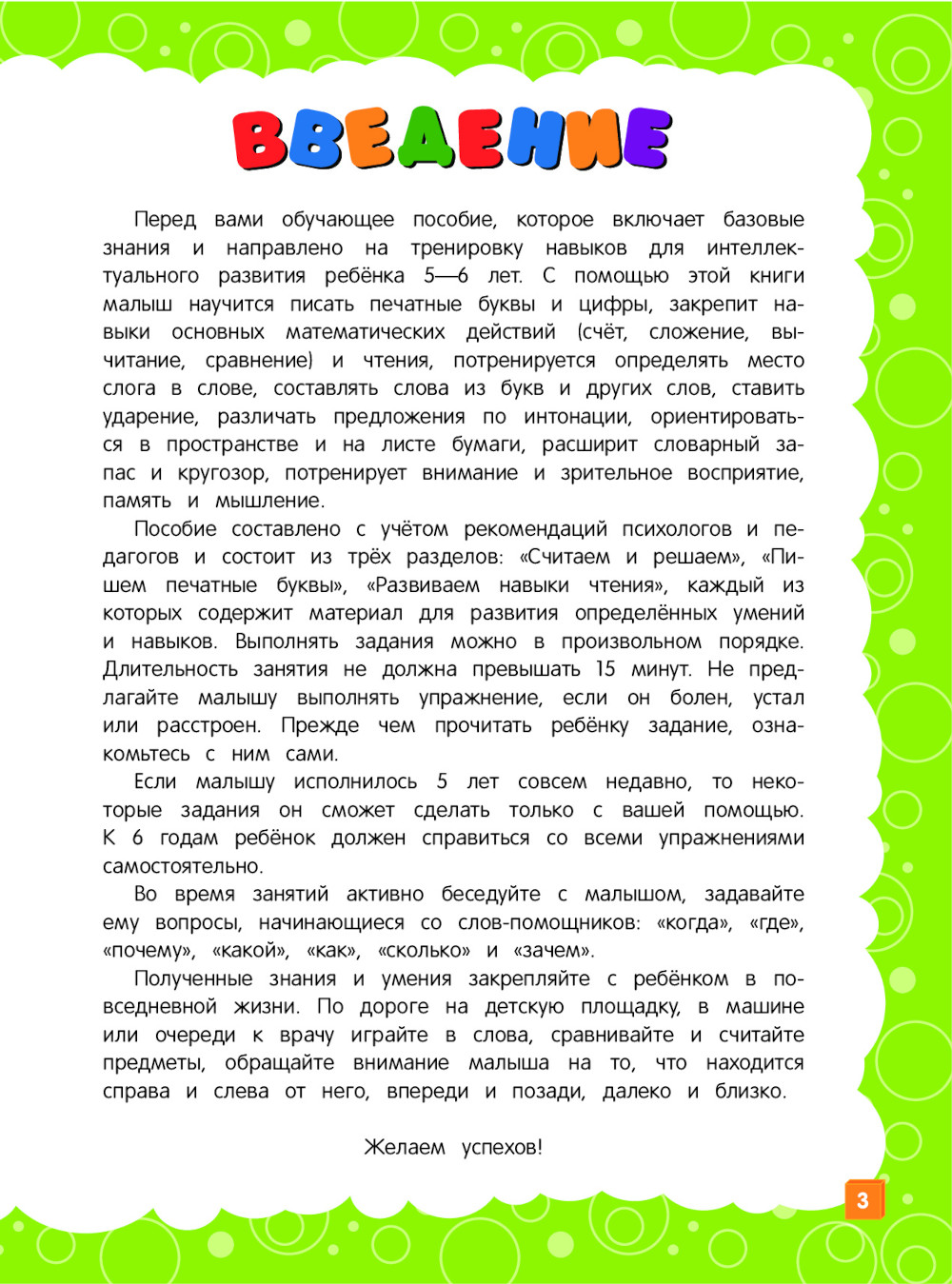 Годовой курс занятий от издательства «Эксмо» - лучший способ эффективного развития ребёнка и его будущей подготовки к школе. Пособие поможет родителям дать ребёнку базовый объём знаний, умений и навыков по основным направлениям дошкольного образования: обучение чтению и счёту, письму. Такая структура способствует быстрому и непринуждённому развитию ребёнка. Занимаясь вместе с мамой, дошкольник научится писать печатные буквы и цифры, закрепит навыки счёта, сложения, вычитания, сравнения, чтения; потренируется определять место слога в слове, составлять слова из букв и других слов, ставить ударение, различать предложения по интонации; расширит словарный запас и кругозор; потренирует внимание, память и мышление. В книге учтены возрастные особенности детей: все материалы подобраны так, чтобы ребёнку было понятно и интересно. Забавные иллюстрации помогут удерживать внимание ребёнка, побуждая его к познанию нового. Кроме того, пособие будет способствовать формированию важных для успешного человека навыков: умение чётко и быстро выполнять поставленную задачу, концентрация на главном, самостоятельность. Развивающая книга станет отличным подарком девочкам и мальчикам 5-6 лет и поможет сделать первый шаг к будущему обучению.| Издательство | Эксмо |