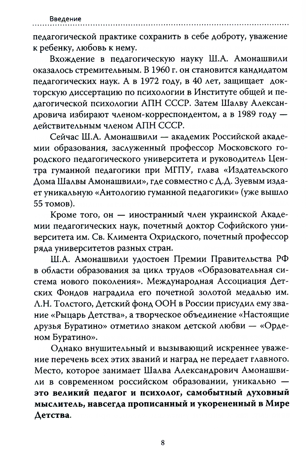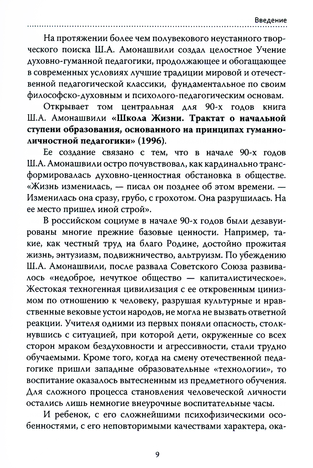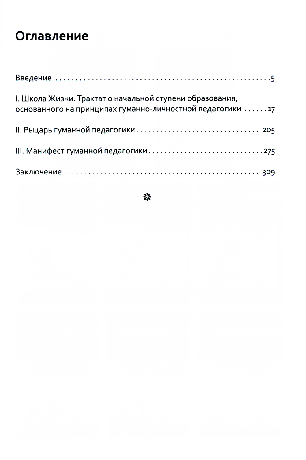 Вся жизнь и творчество Ш.А. Амонашвили посвящены развитию классических идей гуманной педагогики, утверждению в педагогическом сознании понятия "духовного гуманизма". Издание собрания сочинений автора в 20 книгах под общим названием "Основы гуманной педагогики" осуществляется по решению Редакционно-издательского Совета Российской академии образования. В отдельных книгах психолого-педагогические и литературные творения группируются по содержанию. Третья книга вмещает в себя четыре произведения. Они посвящены обоснованию образовательной модели будущего - Школы Жизни, а также представлению образа педагога-гуманиста ("Рыцарь гуманной педагогики"). Завершает издание величественный "Манифест гуманной педагогики". Эта книга, как и все издания, обращена к широкому кругу читателей: учителям, воспитателям, работникам образования, студентам, ученым.