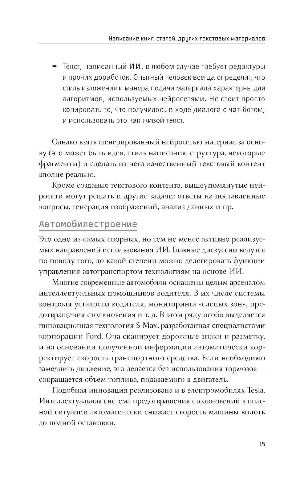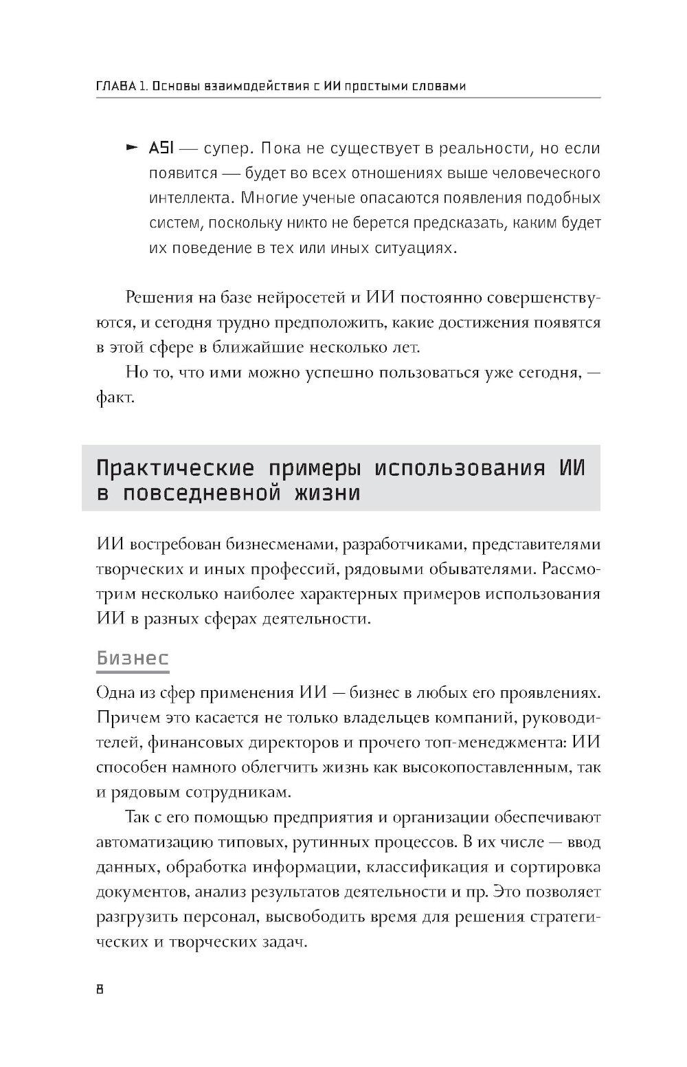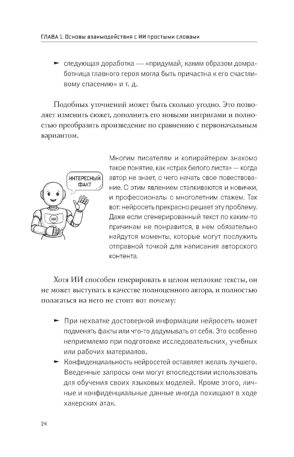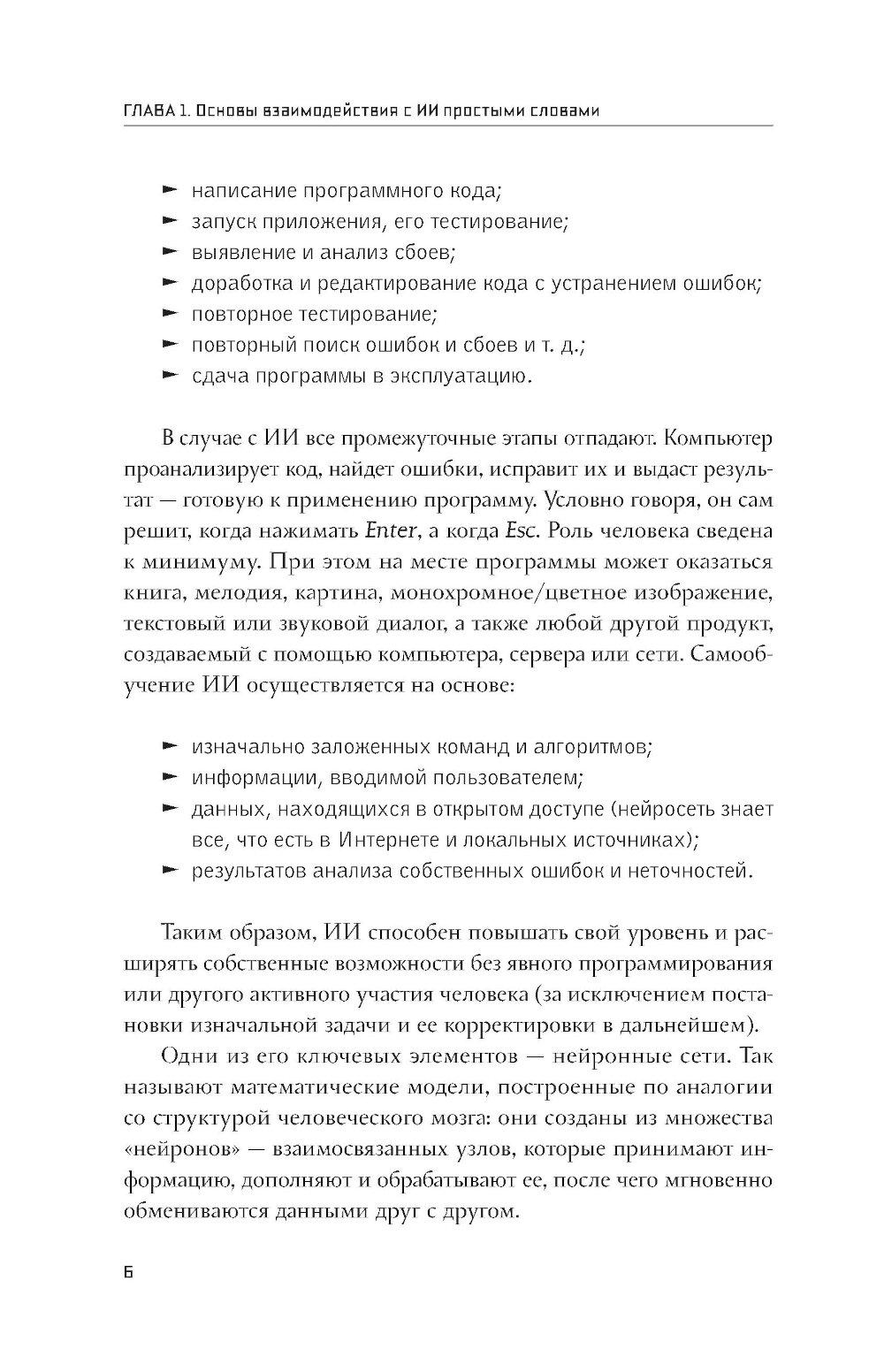 Как использовать искусственный интеллект каждый день без навыков в области высоких технологий. Сегодня не уметь пользоваться искусственным интеллектом - почти то же самое, что не уметь читать. Современные технологии помогают строить здания и фабрики, создавать компьютерные программы и писать книги, рисовать картины и сочинять музыку, улучшать старые фотографии и видео, снимать кинофильмы, справляться с грустью и одиночеством и решать огромное количество повседневных дел. Основы взаимодействия с ИИ простыми словами: - Что такое ИИ и зачем он нужен. - Зачем разговаривать с чат-ботами. - Как создать произведение искусства, не имея специальных навыков. - Кто живет в умной колонке. Легко научиться новому и понять, как устроен современный мир! А главное - вы сможете начать использовать мощные возможности новейших технологий без посторонней помощи. Эти знания помогут адаптироваться к меняющейся цифровой среде и сделают вашу жизнь более интересной.| Издательство | Эксмо |