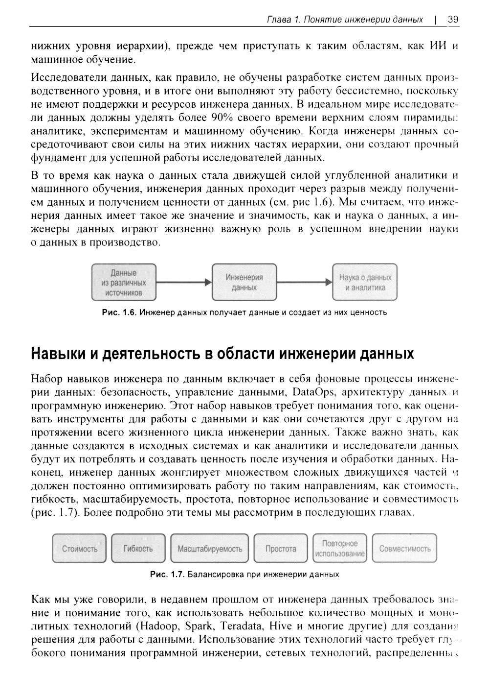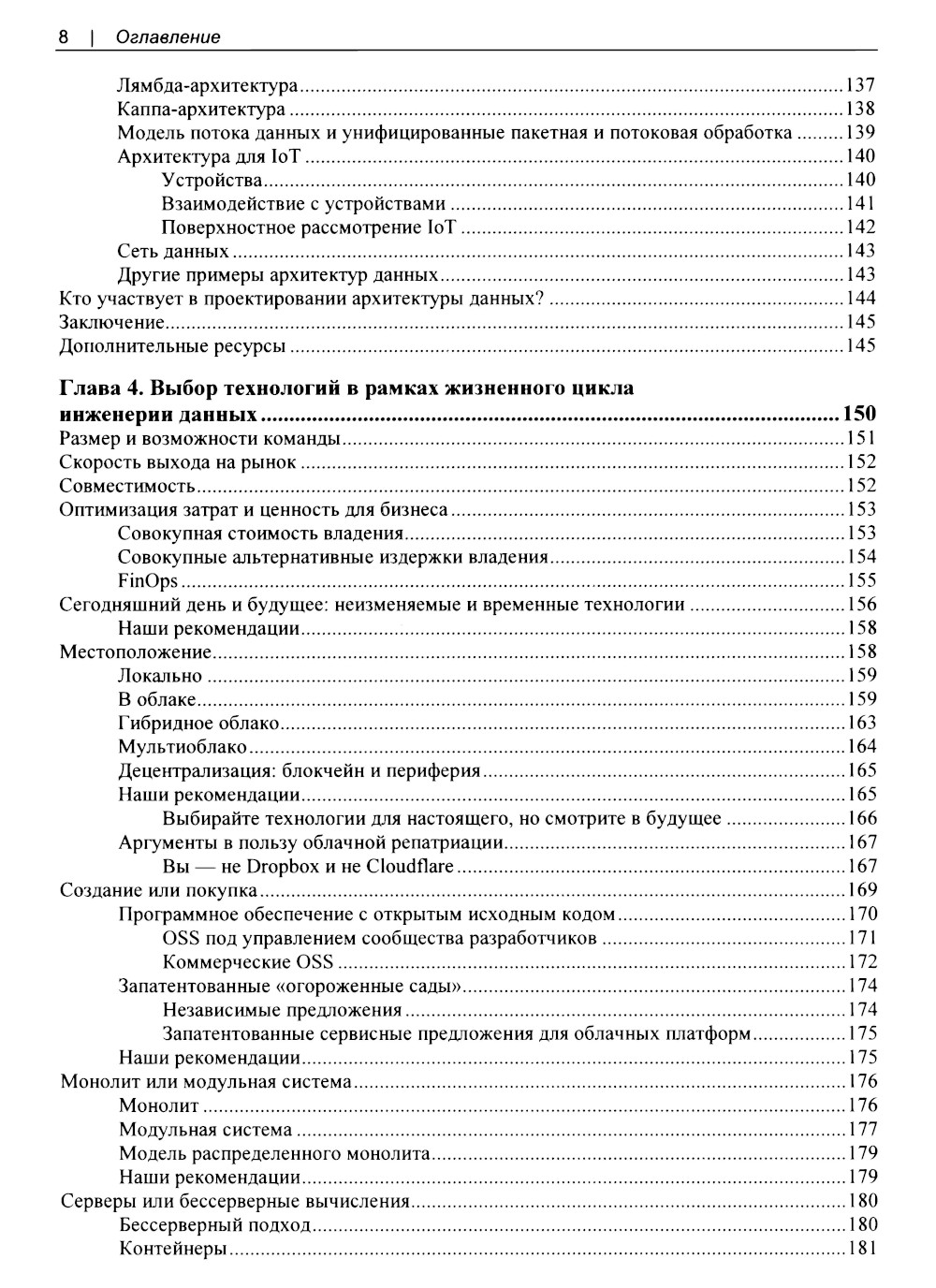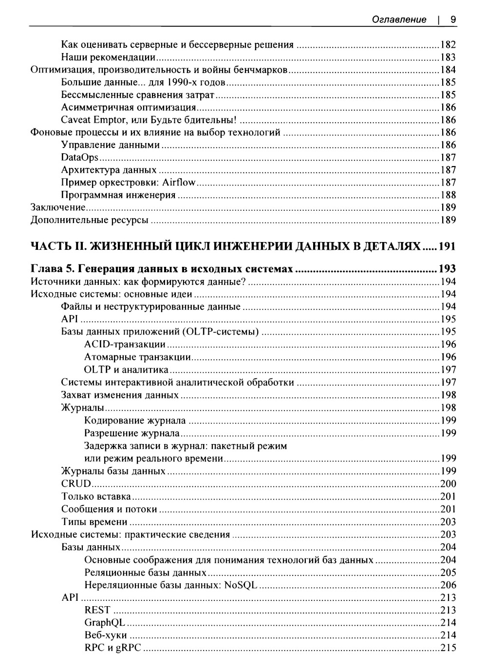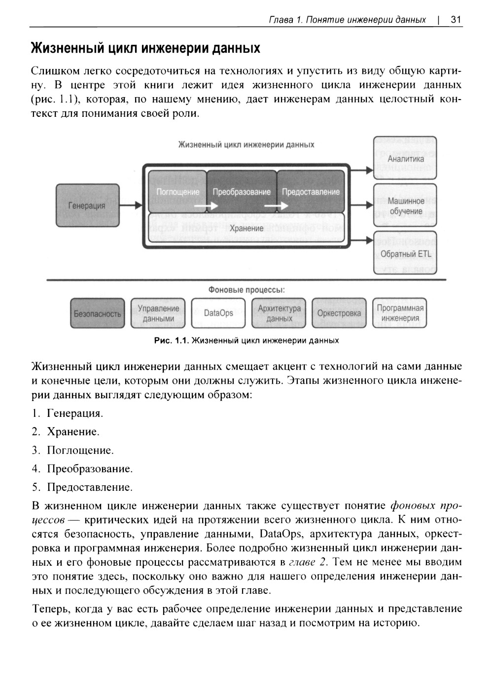 Базовая книга по инженерии данных. Рассмотрены все аспекты проектирования и эксплуатации различных архитектур данных, а также полный жизненный цикл работы с данными: подготовка, поглощение, преобразование, очистка, сочетание, оркестрация, конвейеризация. Особое внимание уделено облачным технологиям, распределению нагрузки и безопасному хранению данных. Разобраны приёмы формирования запросов, работы с базами данных и отслеживания потоков данных. Книга даёт исчерпывающее представление о проектировании систем для обработки разнородных данных, поддержании этих систем в упорядоченном и доступном виде и о тенденциях развития современной индустрии данных. Последнее десятилетие инженерия данных бурно развивается, поэтому среди программистов, исследователей и аналитиков данных растёт запрос на комплексное рассмотрение инженерии данных как цельной парадигмы. Из книги вы узнаете, как проектировать и создавать enterprise-системы для обработкпи данных. Книга помогает оценить разнообразные технологии, доступные в рамках инженерии данных, понять жизненный цикл данных как продукта. Авторы демонстрируют все тонкости инженерии данных в динамике, рассказывают, как объединять и сочетать различные облачные технологии обработки данных для максимального удовлетворения интересов пользователя. Показано, как организовать генерацию, поглощение, оркестрацию, преобразование, хранение и конвейеризацию данных и управление ими в любой среде, независимо от того, на основе какой базовой технологии она построена.| Издательство | АЛИСТ |