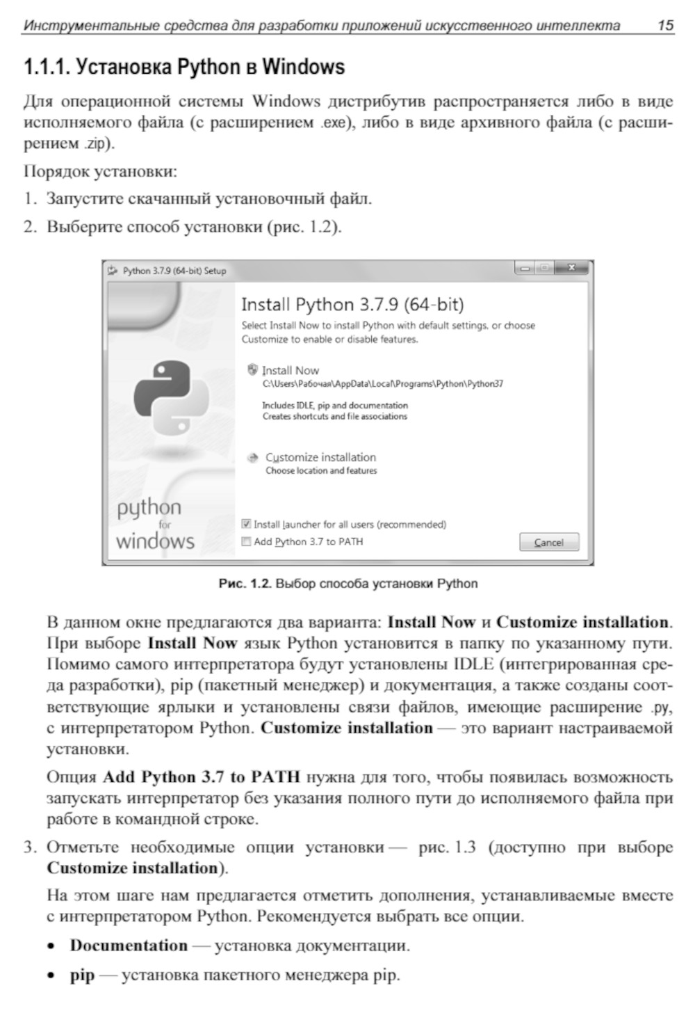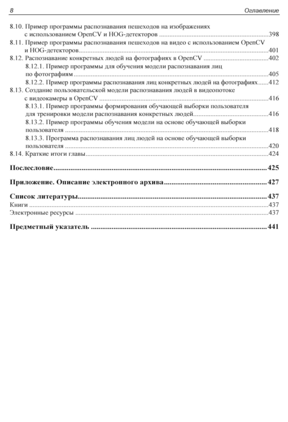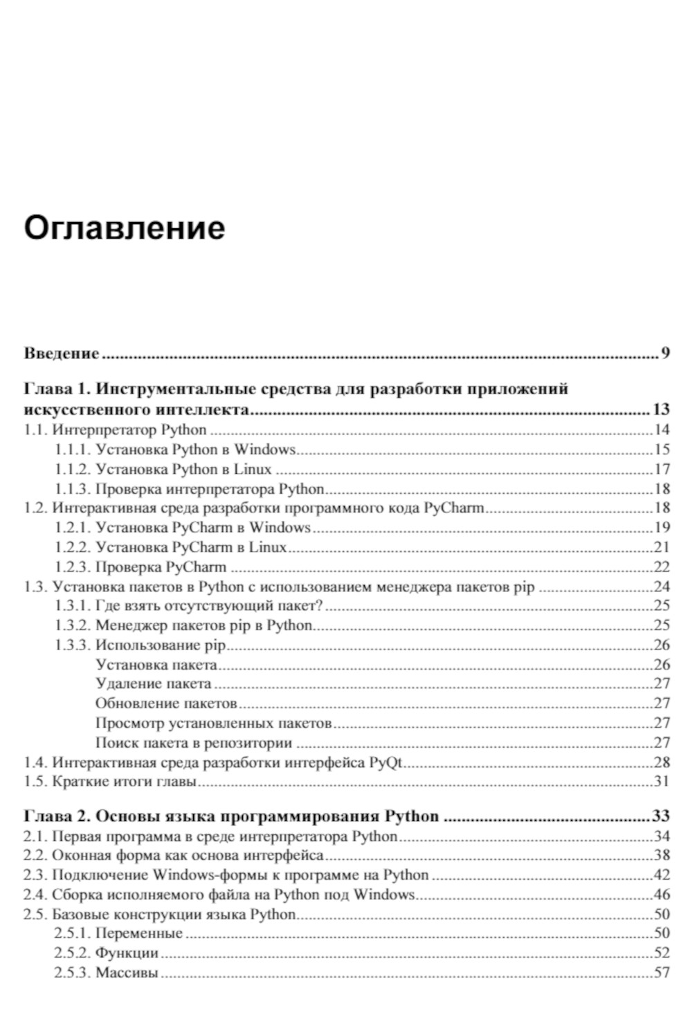Описаны инструментальные средства для разработки приложений искусственного интеллекта. Даны основы языка программирования Python. Раскрыты основные понятия и определения искусственного интеллекта. Рассмотрены вопросы программной реализации элементов нейронной сети и построения многослойных нейронных сетей. Большое внимание уделено применению специализированных библиотек PyBrain, Scikit-learn, Keras, TensorFlow для формирования структуры нейронных сетей и их обучения, и библиотек ImageAI и OpenCV для обработки изображений. Материал иллюстрирован простыми и понятными примерами, демонстрирующими использование предварительно обученных нейронных сетей для распознавания объектов на изображениях, создания собственных наборов данных, формирования структуры сети, ее обучения и практического применения. Во 2-м издании обновлены программные коды и версии библиотек, улучшены рисунки, учтены пожелания читателей и исправлены ошибки.