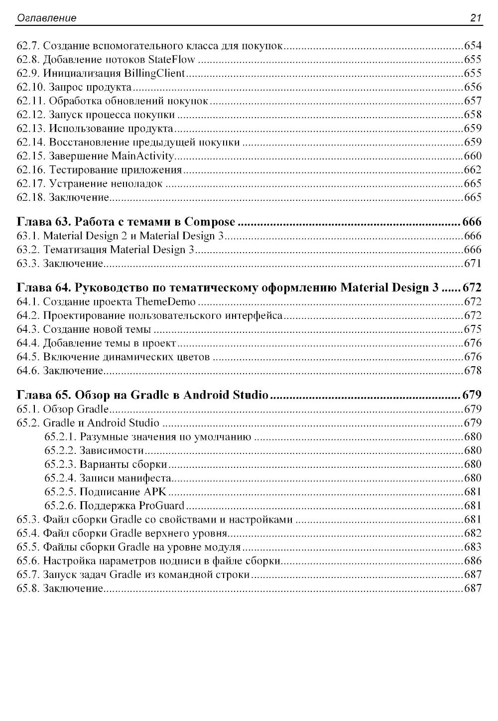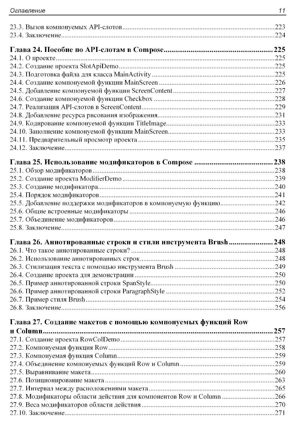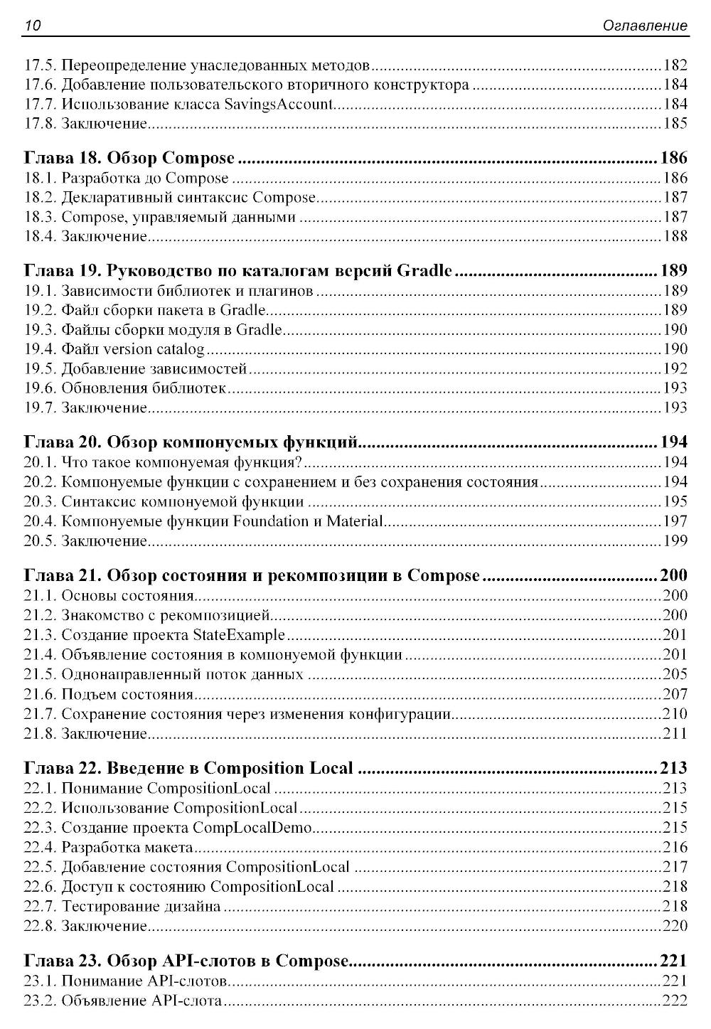 Книга посвящена практическому применению Jetpack Compose - современного декларативного фреймворка для создания пользовательских интерфейсов в Android-приложениях. Показаны основы языка Kotlin, от базовых конструкций до сопрограмм и объектно-ориентированного программирования. Рассматриваются ключевые концепции Compose 1.6, включая построение пользовательских интерфейсов с помощью Composable-функций, управление состоянием, навигация, анимационные эффекты, и архитектура приложений. Отдельное внимание уделено работе с базами данных SQLite и библиотекой Room, биометрической аутентификации, встроенным покупкам, использованию карт Google Maps и публикации приложений в Google Play. В книге представлены практические примеры и подробные пошаговые инструкции по работе в Android Studio Iguana и использованию возможностей Material Design 3.| Издательство | АЛИСТ |