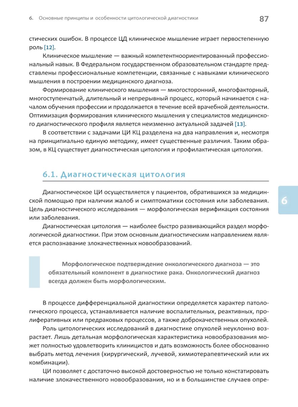 В книге показаны значимость и возможности метода клинической цитологии в современной клинической практике; приведены правила и особенности технологии выполнения цитологического исследования; представлены основы и принципы цитологической диагностики и формирования морфологического диагноза. Предложены пути совершенствования и повышения эффективности цитологической диагностики для решения основной задачи в борьбе с онкологическими заболеваниями - достичь высоких и стабильных показателей в ранней и точной диагностике злокачественных новообразований. Книга предназначена для врачей - клинических цитологов и специалистов, работающих в области клинической цитологии, врачей-клиницистов, принимающих участие в выполнении цитологического исследования и использующих методы цитологического анализа в клинической практике (эндоскопистов, онкологов, хирургов, гинекологов, эндокринологов и др.). Книга может представлять интерес для организаторов здравоохранения, решающих задачи по повышению эффективности и качества оказания медицинской помощи населению в борьбе с онкологическими заболеваниями.| Издательство | Практическая медицина |