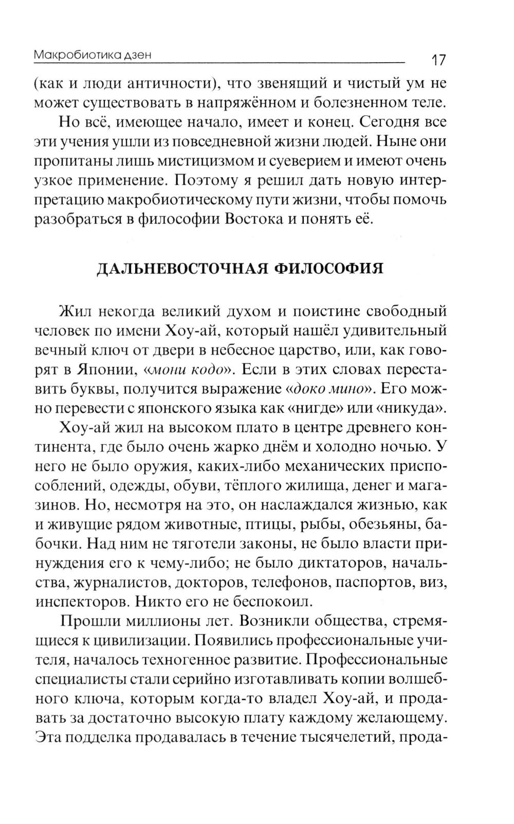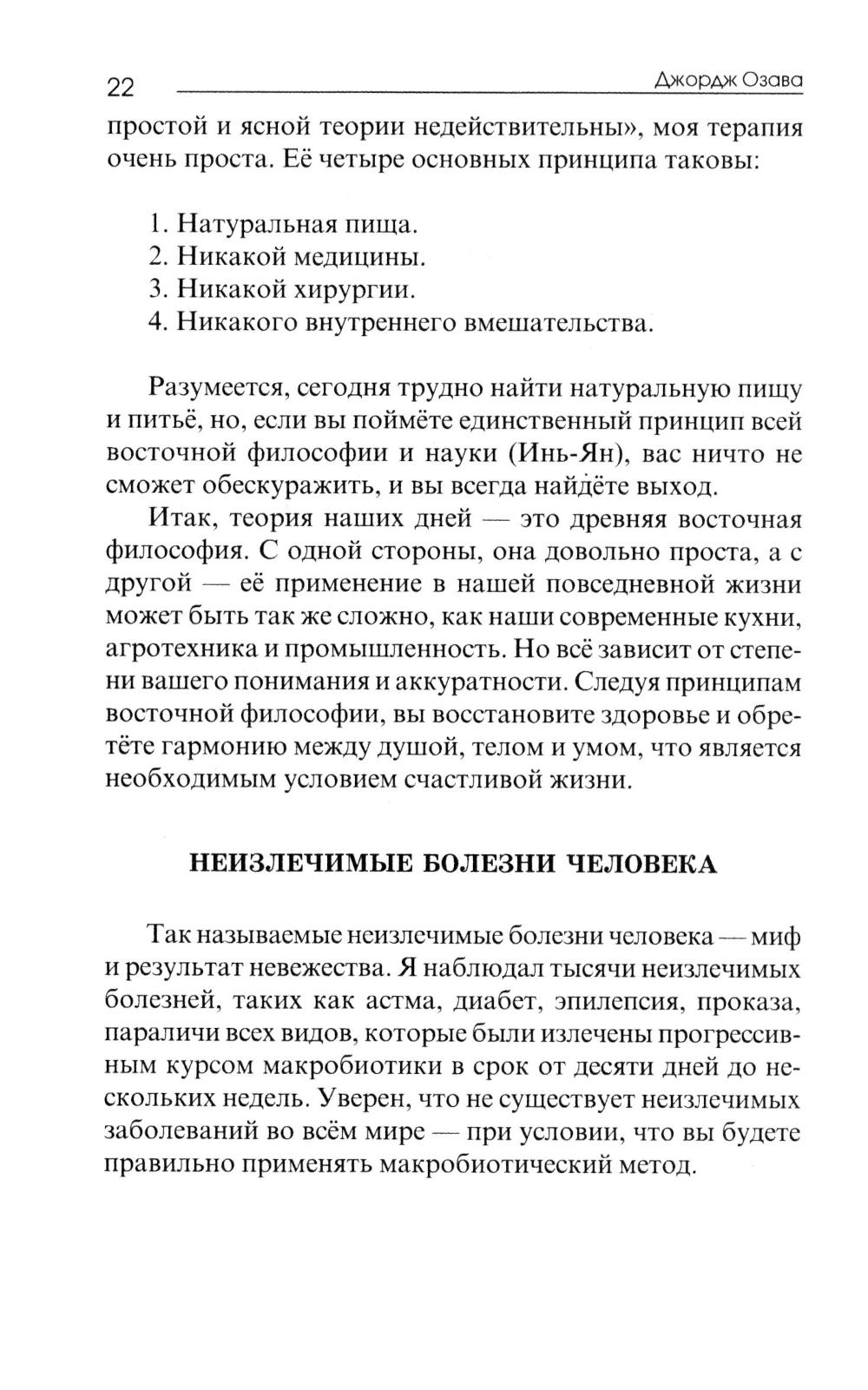 Книга представляет собой изложенное простым и доступным языком руководство по гармоничному питанию, построенному в соответствии с принципом инь-ян и с соблюдением кислотно-щелочного равновесия. Подобное питание не только позволяет сохранить и восстанавливать здоровье. Оно меняет качество всей жизни, придавая ей истинное благополучие и полноту, выстраивая сё в гармонии со Вселенной и её законами.Макробиотика в переводе - «большая жизнь». Ещё Гиппократ использовал это слово, описывая здоровых и долгоживущих людей. Японский просветитель Джордж Озава назвал своё учение макробиотика, подчеркнув тем самым его родство с древней восточной системой питания.| Издательство | Balbe |