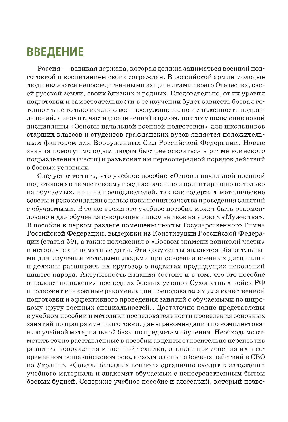 Изложенные материалы базируются на законах, юридических положениях и уставных требованиях с целью помочь молодому человеку в военном становлении, дать возможность вооружить его военными знаниями, необходимыми для прохождения военной службы, осознать свою роль и значимость в защите Отечества. Содержит материалы по основным военным дисциплинам и рекомендации опытных воинов специальной военной операции (СВО). Методические советы по проведению занятий помогут преподавателям в освоении обучаемыми военных дисциплин. Тематика учебного пособия прошла предварительное тестирование у командиров батальонов, командиров рот, принимавших участие в СВО. Для школьников старших классов в качестве основного и дополнительного материала для изучения основ начальной военной подготовки.| Издательство | КноРус |