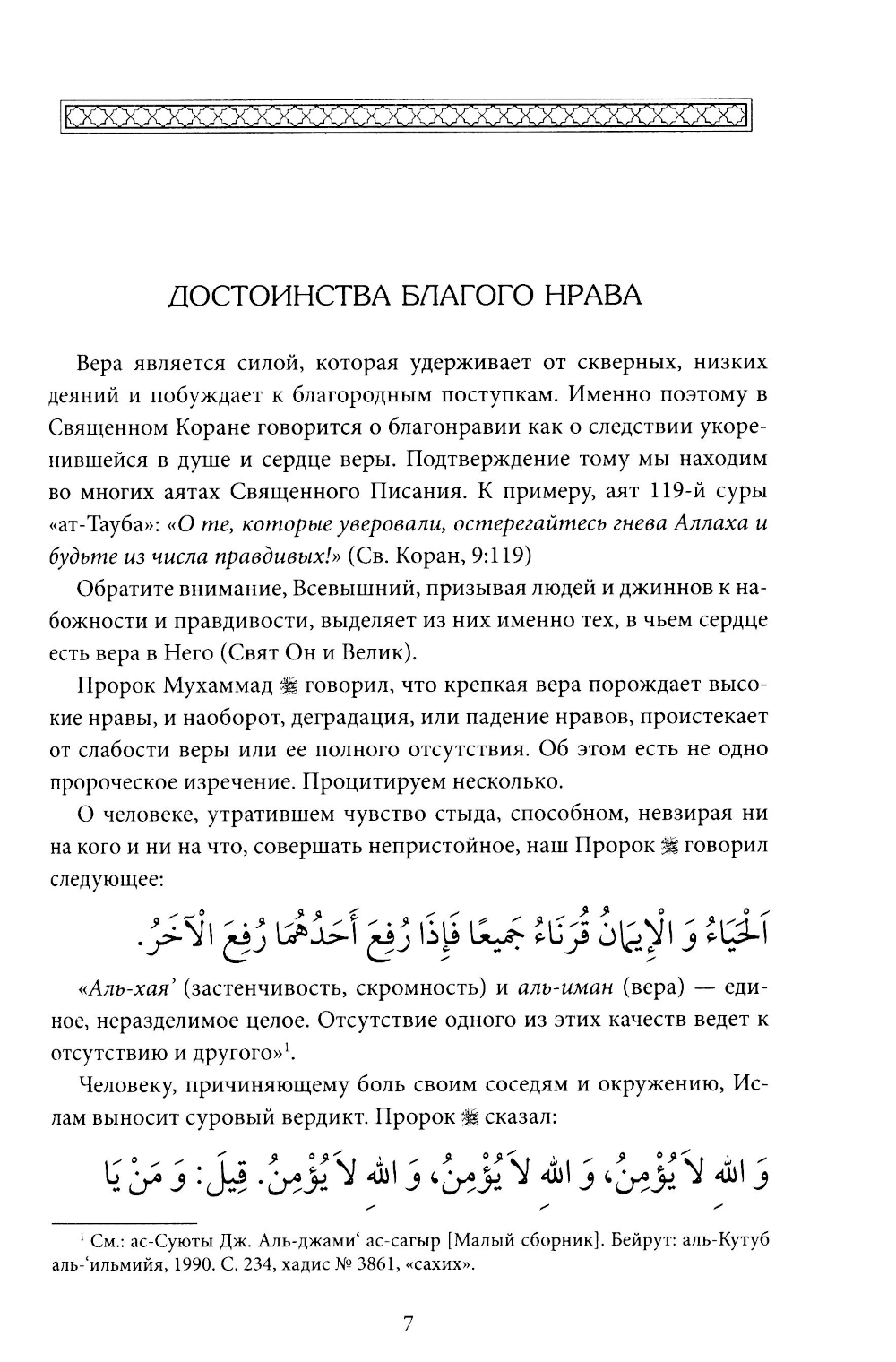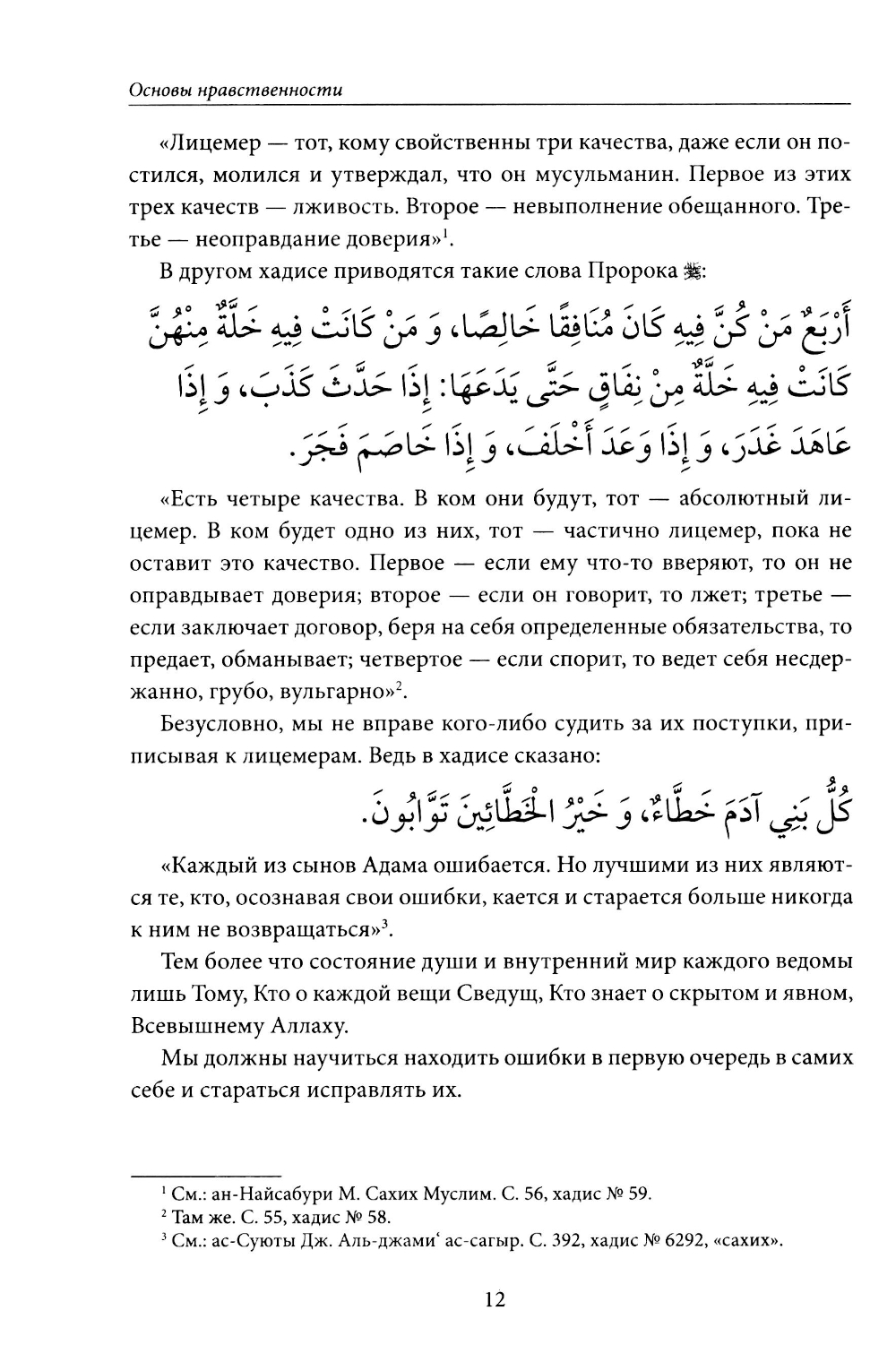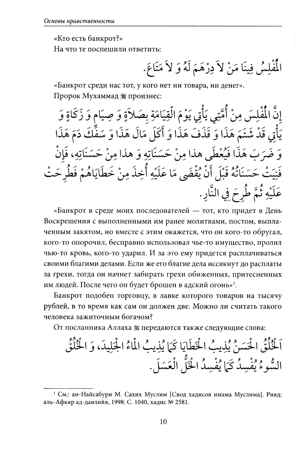 Специалисты Московского исламского колледжа, важнейшей задачей которых является духовно-нравственное воспитание обучающихся, поработали над сокращением текста, разбивкой на уроки-главы. Каждая глава завершается вопросами, которые призваны помочь изучающему тему проверить свои знания и закрепить изученное. Каким должен быть настоящий мусульманин? Каково его поведение и помыслы? Как он строит отношения с членами своей семьи, своими родителями и детьми, родственниками и друзьями, с обществом? Какое впечатление производит он на окружающих? Какой пример он подает? Что помогает ему нести людям искреннюю веру, добро и свет? Данное пособие поможет найти ответы на эти и многие другие важные вопросы. Учебное пособие подготовлено при участии И.Р. Байбекова и М.А. Татаренко и предназначено для учащихся начальных и средних мусульманских учебных заведений.| Издательство | Диля |