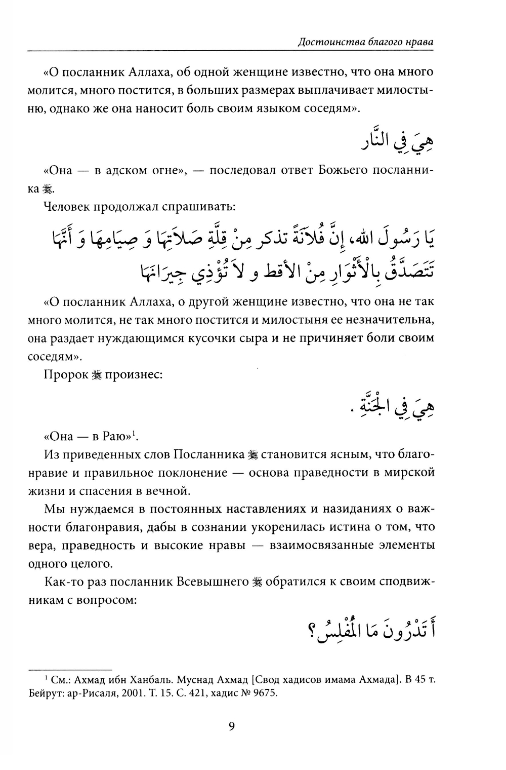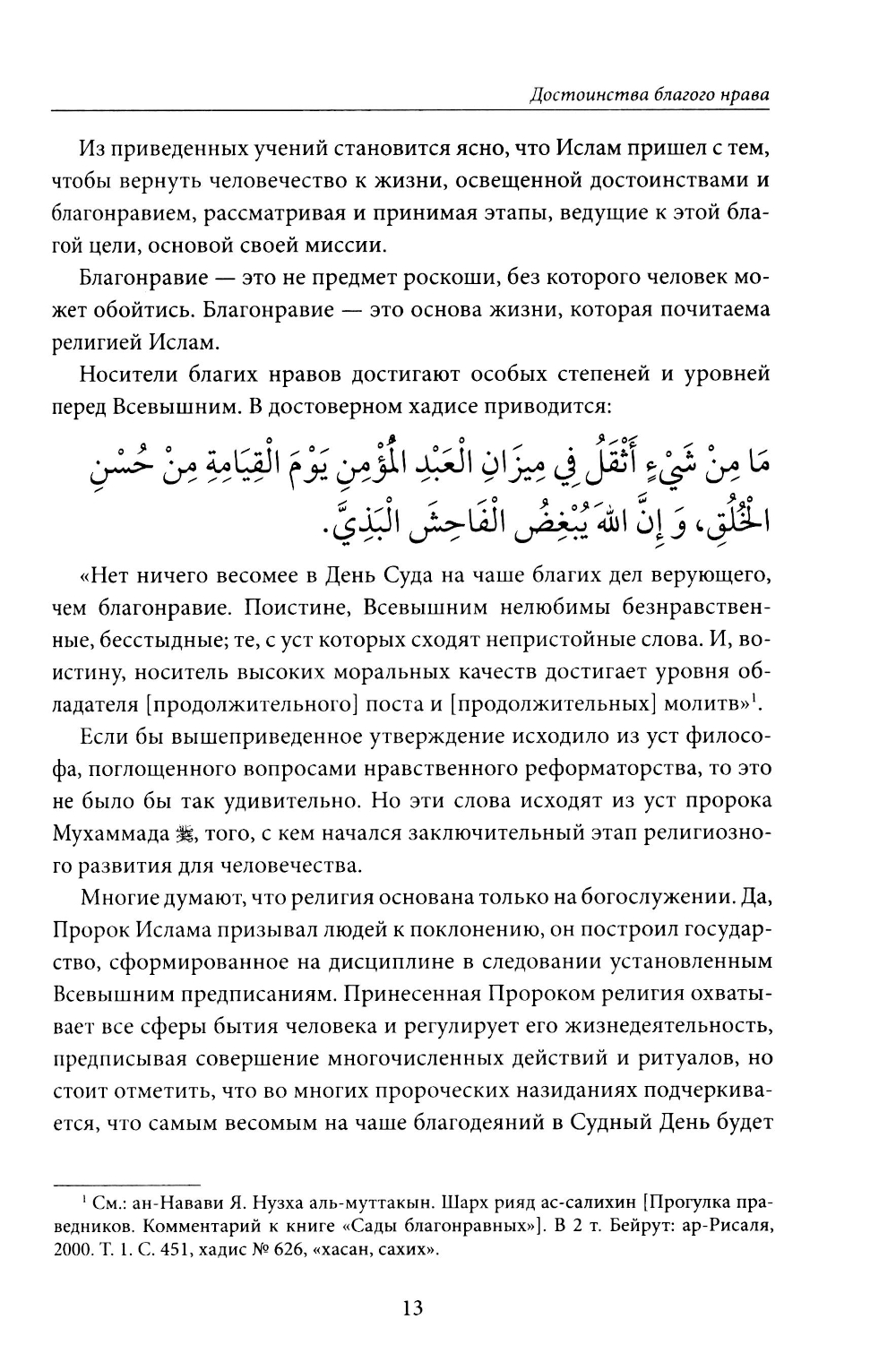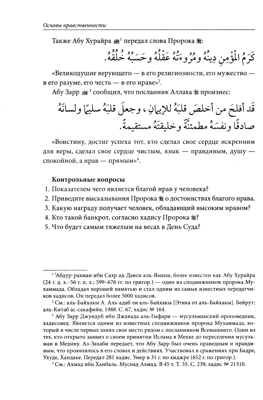 Специалисты Московского исламского колледжа, важнейшей задачей которых является духовно-нравственное воспитание обучающихся, поработали над сокращением текста, разбивкой на уроки-главы. Каждая глава завершается вопросами, которые призваны помочь изучающему тему проверить свои знания и закрепить изученное. Каким должен быть настоящий мусульманин? Каково его поведение и помыслы? Как он строит отношения с членами своей семьи, своими родителями и детьми, родственниками и друзьями, с обществом? Какое впечатление производит он на окружающих? Какой пример он подает? Что помогает ему нести людям искреннюю веру, добро и свет? Данное пособие поможет найти ответы на эти и многие другие важные вопросы. Учебное пособие подготовлено при участии И.Р. Байбекова и М.А. Татаренко и предназначено для учащихся начальных и средних мусульманских учебных заведений.| Издательство | Диля |