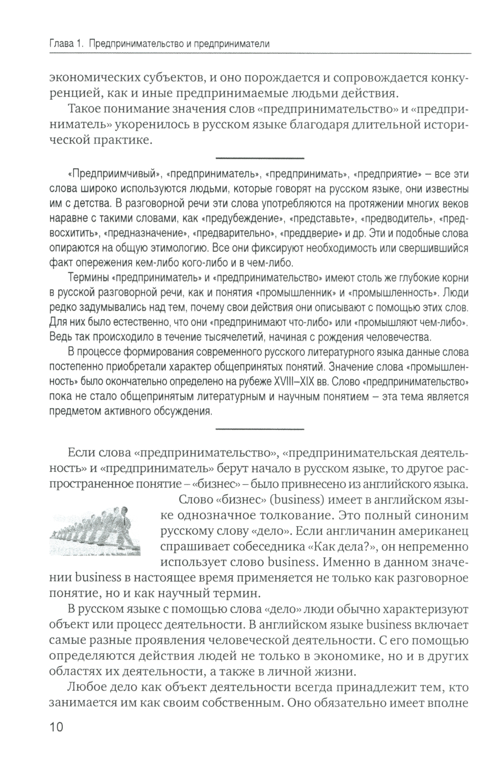 Раскрывается смысл предпринимательства как вида профессиональной деятельности, содержание предпринимательских функций, профессиональных предпринимательских интересов, условий занятия предпринимательством на профессиональном уровне. Излагаются причины многообразия подходов к восприятию предпринимательства разными категориями людей. Подробно рассматриваются направления предпринимательской занятости, системные признаки и национальные модели предпринимательства, его исторические корни в нашей стране, а также специфические черты современного российского предпринимательства на рубеже XX-XXI вв. Издание является вводным курсом, предваряющим изучение учебных дисциплин «Управление собственным бизнесом», «Конкуренция в предпринимательстве», «Трекинг стартапов», «Обеспечение конкурентной устойчивости стартапов», «Генерирование бизнес-идей», «Управление развитием бизнеса», «Предпринимательское право», «Предпринимательский селф-менеджмент», составляющих базис университетской образовательной программы по предпринимательству. Для студентов колледжей и обучающихся по программам бакалавриата и специалитета высших учебных заведений, действующих предпринимателей, а также слушателей программ повышения квалификации.| Издательство | МФПУ "Синергия" |