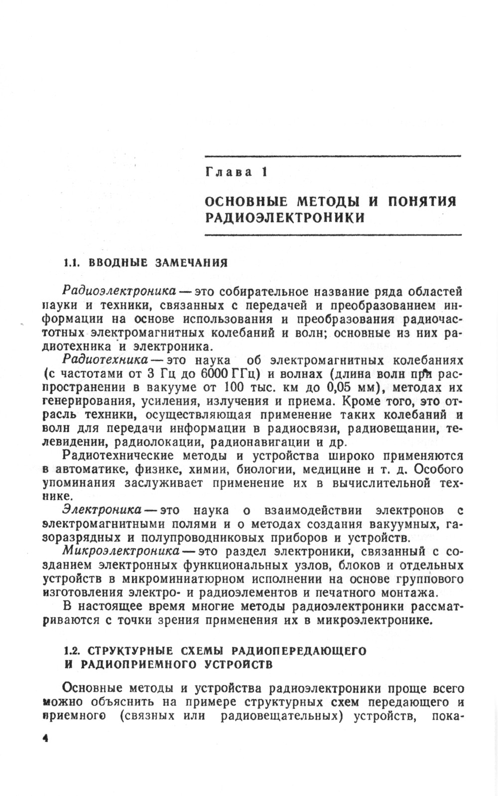 В настоящей книге излагаются основы радиоэлектроники. Описываются элементы электронных цепей. Рассматриваются основные электронные устройства: усилители, генераторы, модуляторы, детекторы и т. п.; методы передачи и приема сигналов; влияние шумов и помех. Подробно освещены вопросы применения интегральных микросхем, полевых транзисторов, операционных усилителей. Отдельная глава посвящена микропроцессорам. Книга предназначена для широкого круга специалистов, работающих в различных областях радиотехники; может быть полезна студентам вузов радиотехнических и радиофизических специальностей.