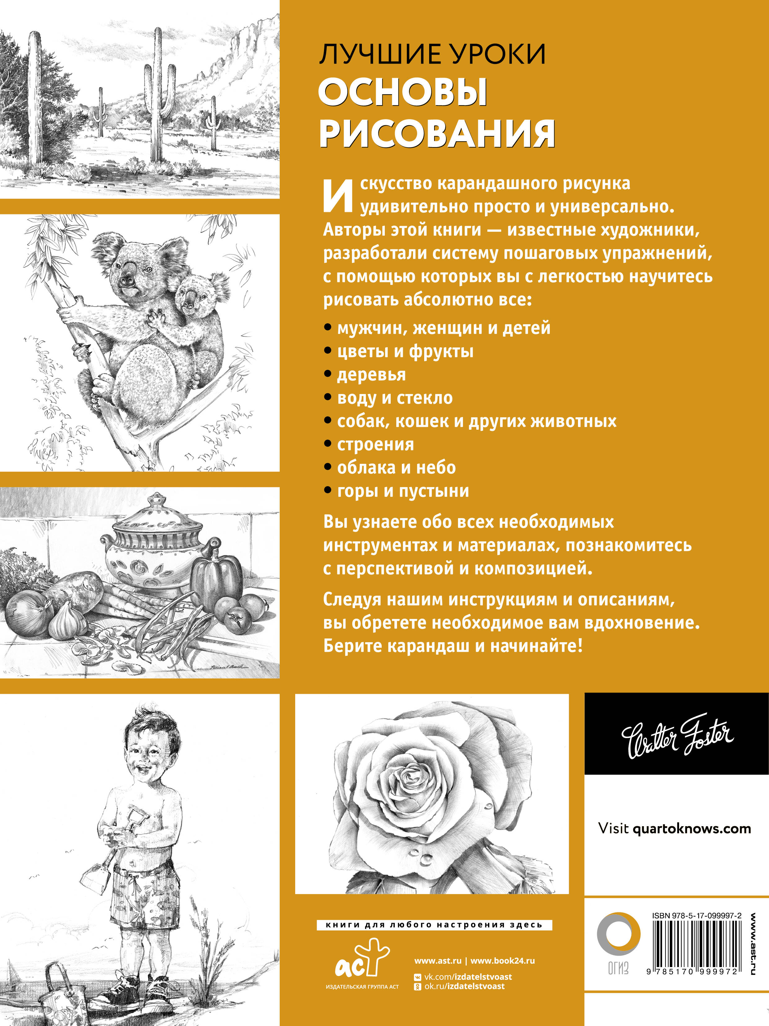 Искусство карандашного рисунка универсально -это и небольшой набросок предмета и сложная композиция, с полным диапазоном тональных оттенков. Художники, работы которых представлены в этой книге, создали свой собственный, особый подход к рисунку, отраженный в многочисленных и универсальных уроках. С помощью простых пошаговых упражнений, вы освоите как отдельные детали пейзажа, натюрморта и портрета: дервья, облака, цветы и фрукты, отдельные черты лица и фигуру человека, так и научитесь рисовать сложные композиции. Следуя инструкциям и описаниям, представленным в этой книге, вы обретете так необходимое вам вдохновение.| Издательство | ИЗДАТЕЛЬСТВО "АСТ" |
