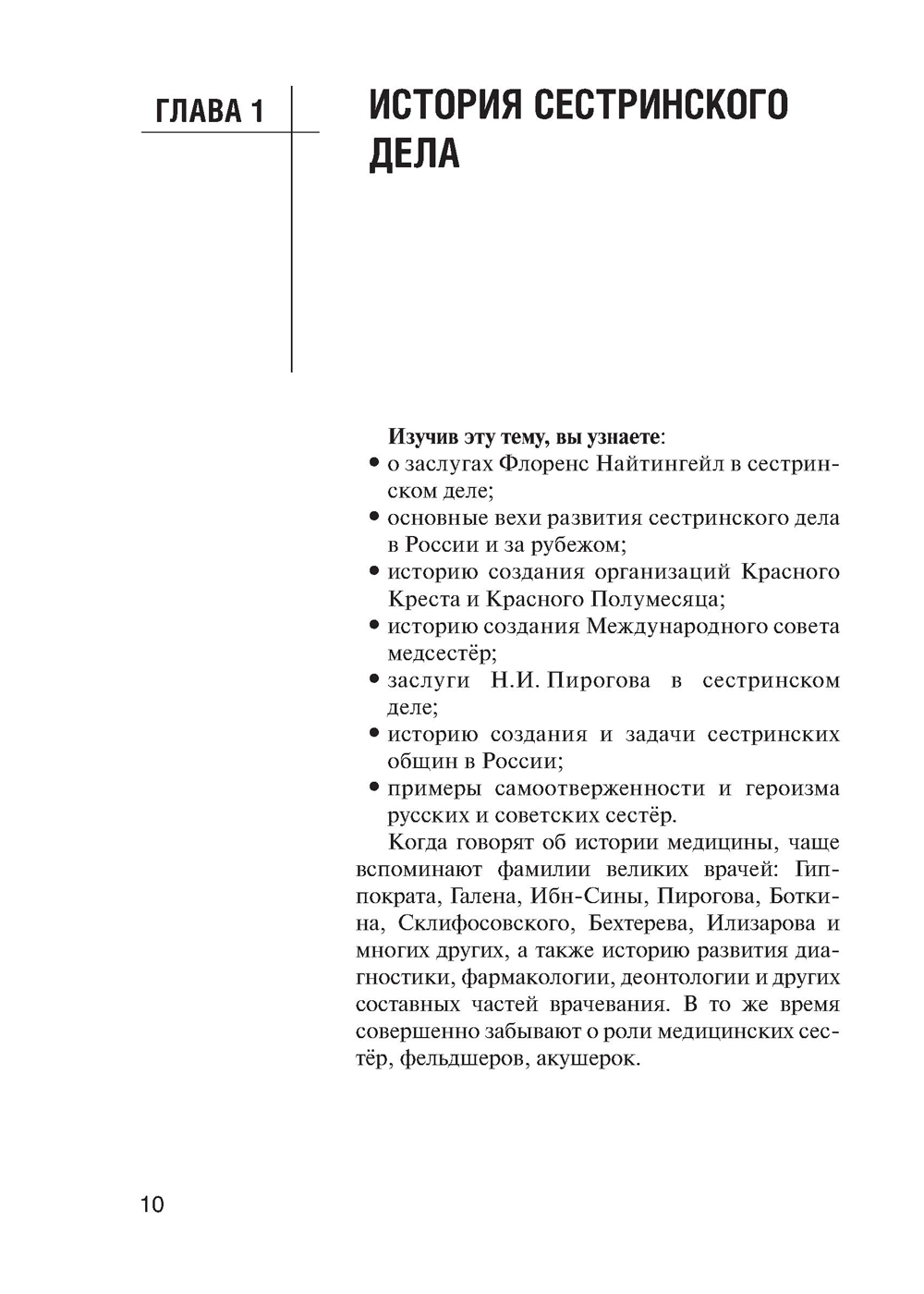 Учебник "Основы сестринского дела" состоит из двух частей. В первой части освещены общие вопросы теории сестринского дела и сестринского процесса как методологической основы сестринской практики. Ее цель - отразить развитие сестринского дела. Во второй части представлены материалы, касающиеся деятельности сестринского персонала. Предназначен студентам медицинских училищ и колледжей, обучающимся по специальностям "Сестринское дело", "Акушерское дело", "Лечебное дело" дисциплины "Основы сестринского дела".| Издательство | ГЭОТАР-Медиа |
