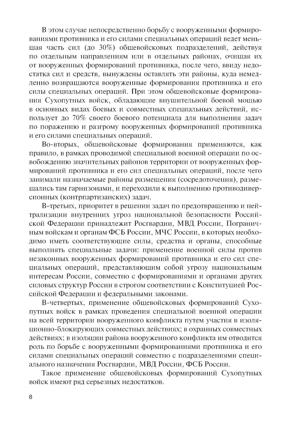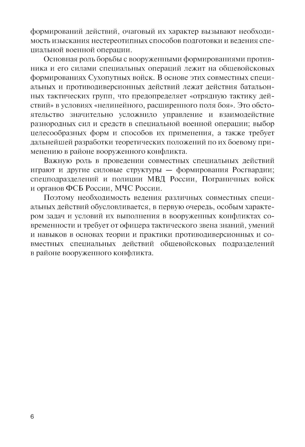 Излагаются рекомендации по основам ведения специальных и противодиверсионных действий мотострелковыми и танковыми батальонами (батальонными тактическими группами - БТГР) и ротами (ротными тактическими группами - РТГр) во взаимодействии с подразделениями других родов войск Вооруженных Сил и воинских формирований различных силовых структур России в районе вооруженного конфликта. Основное внимание уделяется подготовке и ведению боевых (тактических и специальных) действий с применением только обычного оружия в условиях вооруженного конфликта при выполнении поставленных задач. Основные положения разработаны в соответствии с положениями боевых уставов, руководств и наставлений с учетом всех уточнений и дополнений на 2023 год. Соответствует ФГОС ВО последнего поколения. Для студентов, обучающихся на военных кафедрах и в учебных военных центрах гражданских вузов.| Издательство | КноРус |