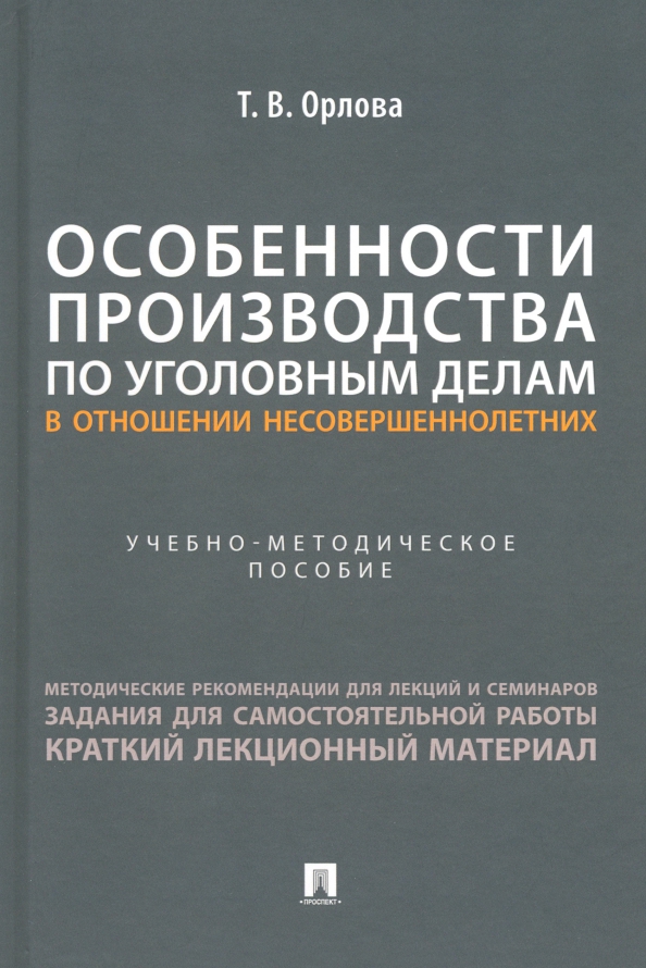 Аннотация: Особенности производства по уголовным делам в отношении несовершеннолетних. Учебно-методическое пособие