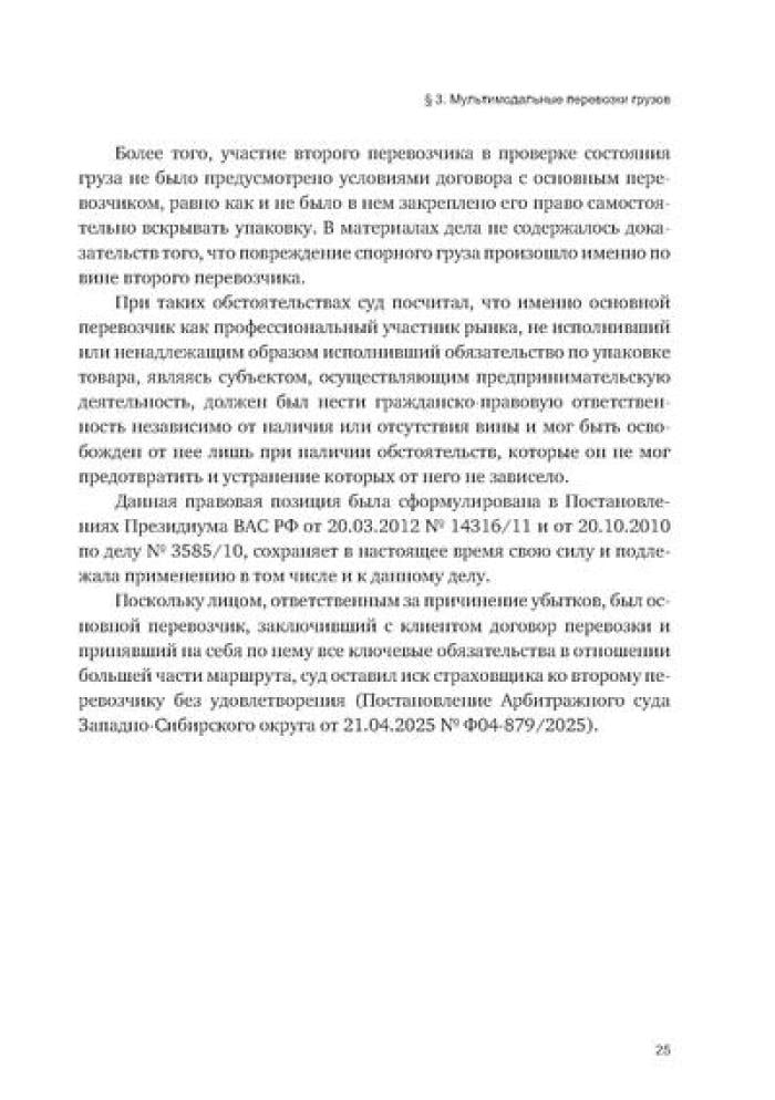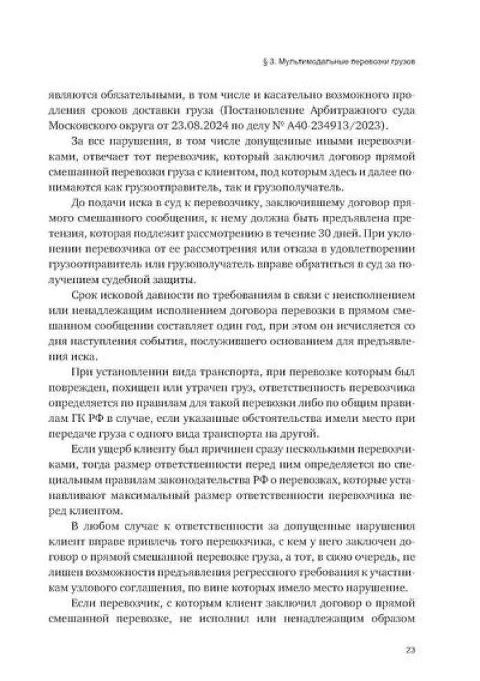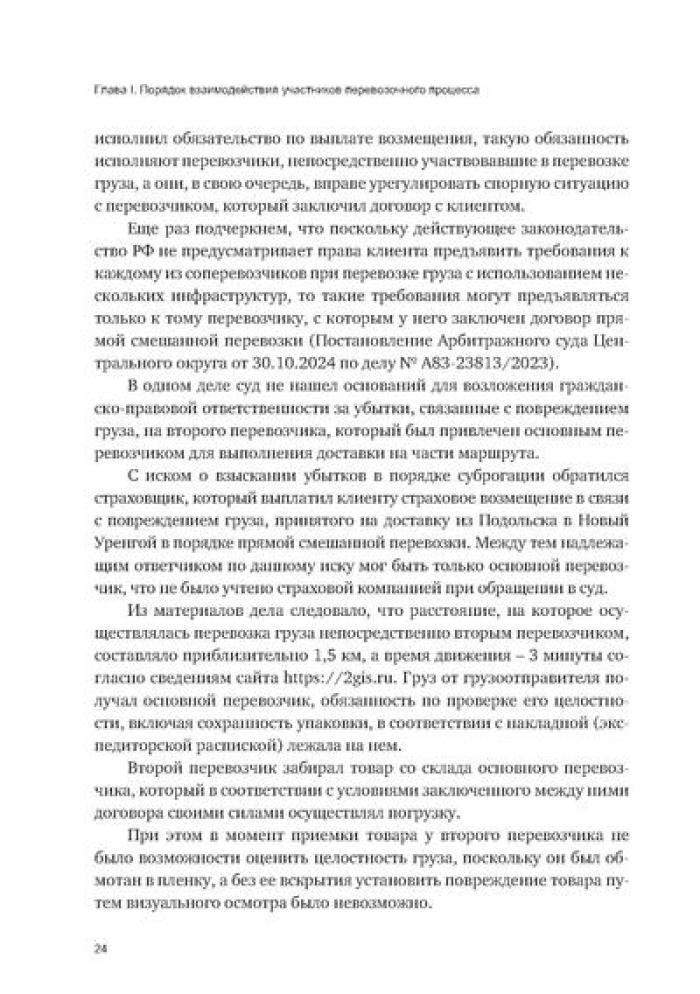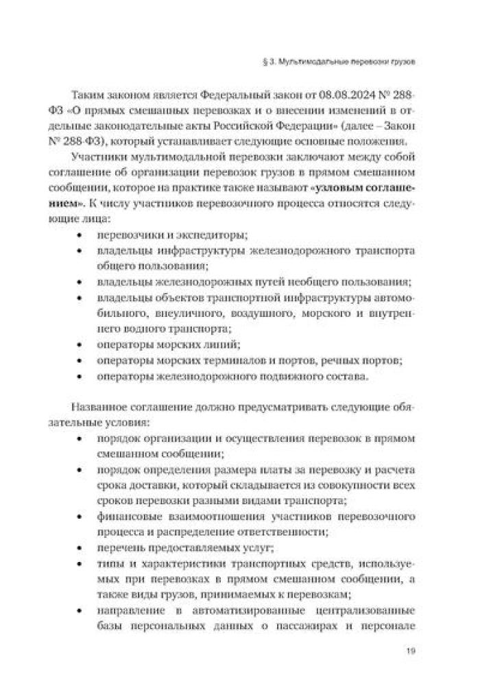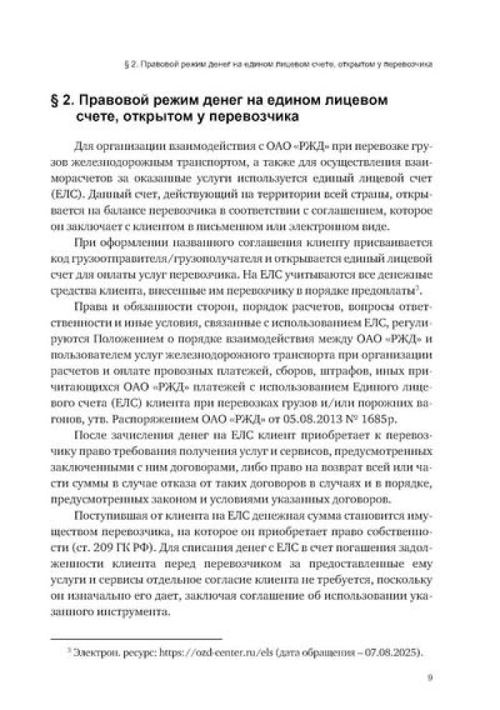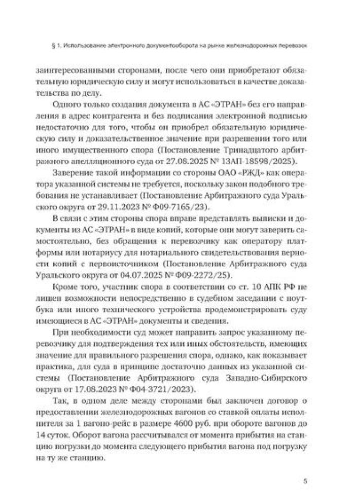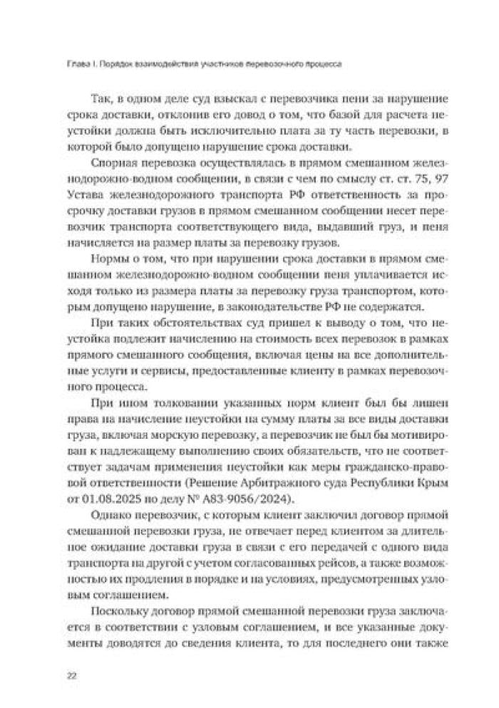 Железнодорожный транспорт является одним из ключевых способов перевозки пассажиров, грузов и грузобагажа. Среди его главных преимуществ в сравнении с иными видами отечественного транспорта можно выделить безопасность, скорость и комфорт, независимость от погодных условий, а также возможность транспортировки крупнотоннажных грузов на дальние расстояния. Несмотря на детальную нормативно-правовую регламентацию отношений, складывающихся на рынке железнодорожных перевозок, а также наличие значительной и в целом достаточно единообразной судебной практики, многие вопросы остаются до сих пор неясными. Первая глава посвящена порядку взаимодействия участников перевозочного процесса, включая использование электронного документооборота на рынке железнодорожных перевозок, правовой режим денег на едином лицевом счете, открытом у перевозчика, и особенности осуществления мультимодальных перевозок грузов. Во второй главе данной книги исследуются отдельные проблемы ответственности перевозчика перед клиентом, а именно: возмещение убытков, причиненных задержкой поездов, взыскание пени за просрочку доставки грузов, порожних вагонов и контейнеров, а также оспаривание уже упомянутого нами незаконного сбора за изменение места подачи /уборки вагона под погрузку /выгрузку. В третьей, завершающей главе мы коснулись важных вопросов, связанных с уклонением перевозчика от составления коммерческого акта, проанализировали досудебный порядок урегулирования споров с перевозчиком, а также соотношение общего и сокращенного сроков исковой давности. Настоящая книга ни в коем случае не претендует на роль комплексного исследования и задумывалась соавторами как дополнительное практическое пособие для изучения отдельных проблем, возникающих в рассматриваемой сфере правоприменения. Хотим выразить надежду, что наша работа будет полезна судьям, адвокатам, практикующим юристам, другим специалистам и всем тем, кто интересуется правовым регулированием рынка железнодорожных перевозок.| Издательство | Инфотропик Медиа |
