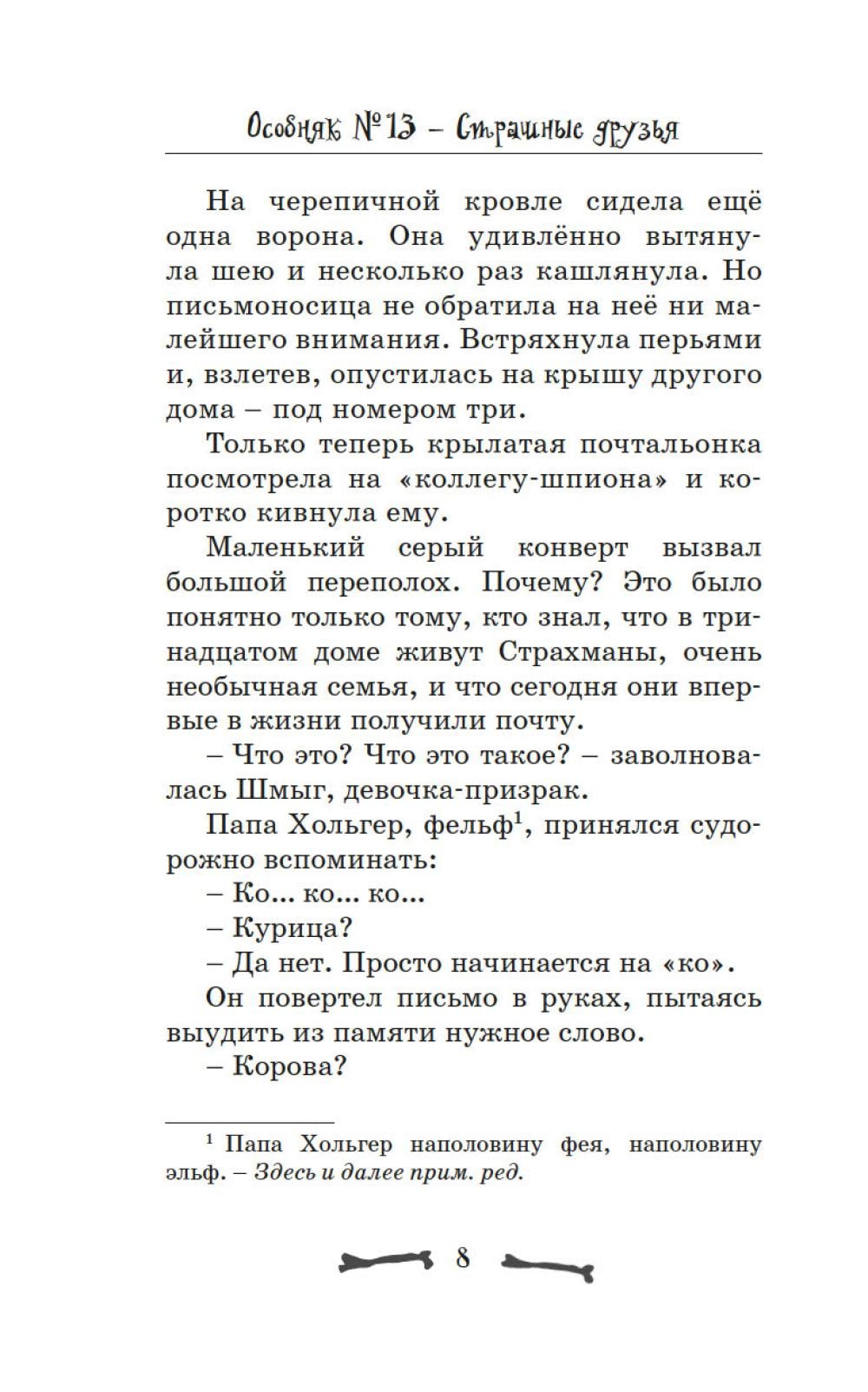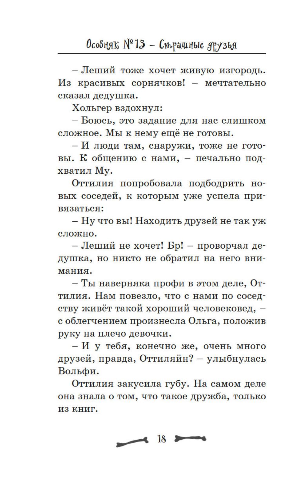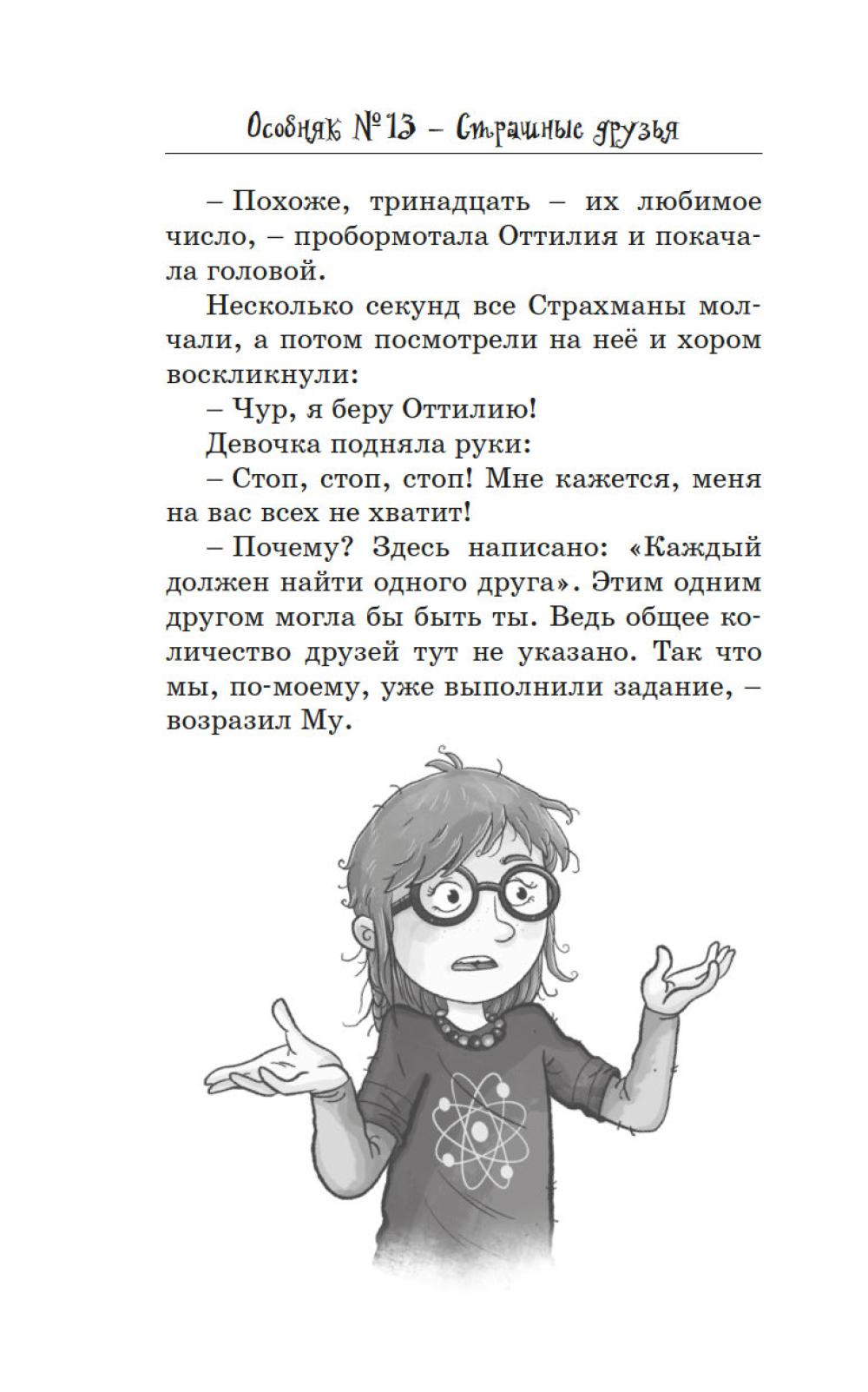 «ОСОБНЯК № 13» - ЭТО ЛЕГКИЕ МУРАШКИ, ВЕСЕЛЬЕ И ЦЕЛАЯ ГОРА ПРИКЛЮЧЕНИЙ! СТРАШНО ВЕСЕЛАЯ ИСТОРИЯ ДЛЯ ДЕТЕЙ,КОТОРЫЕ БОЯТСЯ СКУКИ, А НЕ МОНСТРОВ! Не успели Страхманы освоиться на новом месте, как ворона-шпионка приносит им письмо с очередным заданием. За тринадцать дней каждый из этой необычной семейки должен найти себе друга! Подружиться с кем-то - дело само по себе нелегкое, а если у тебя рожки, клыки или ты невидимка, то это просто невыполнимо. Но Страхманы не отчаиваются, ведь у них есть Оттилия! Она точно знает, где и как люди находят друзей.| Издательство | Махаон |