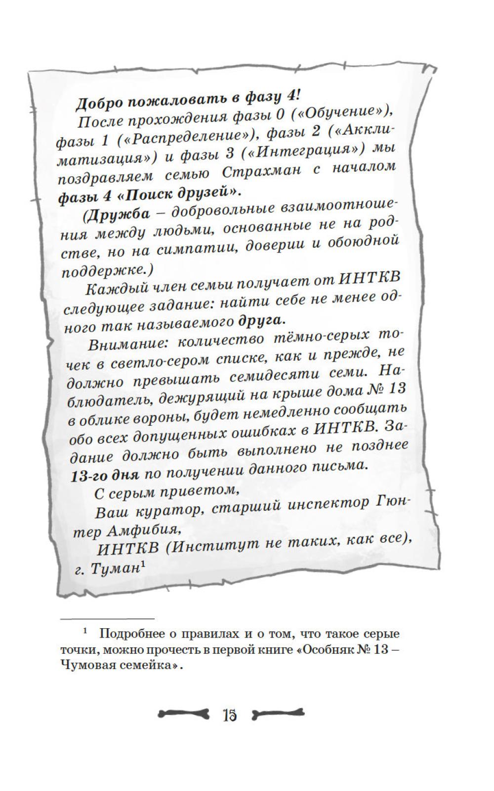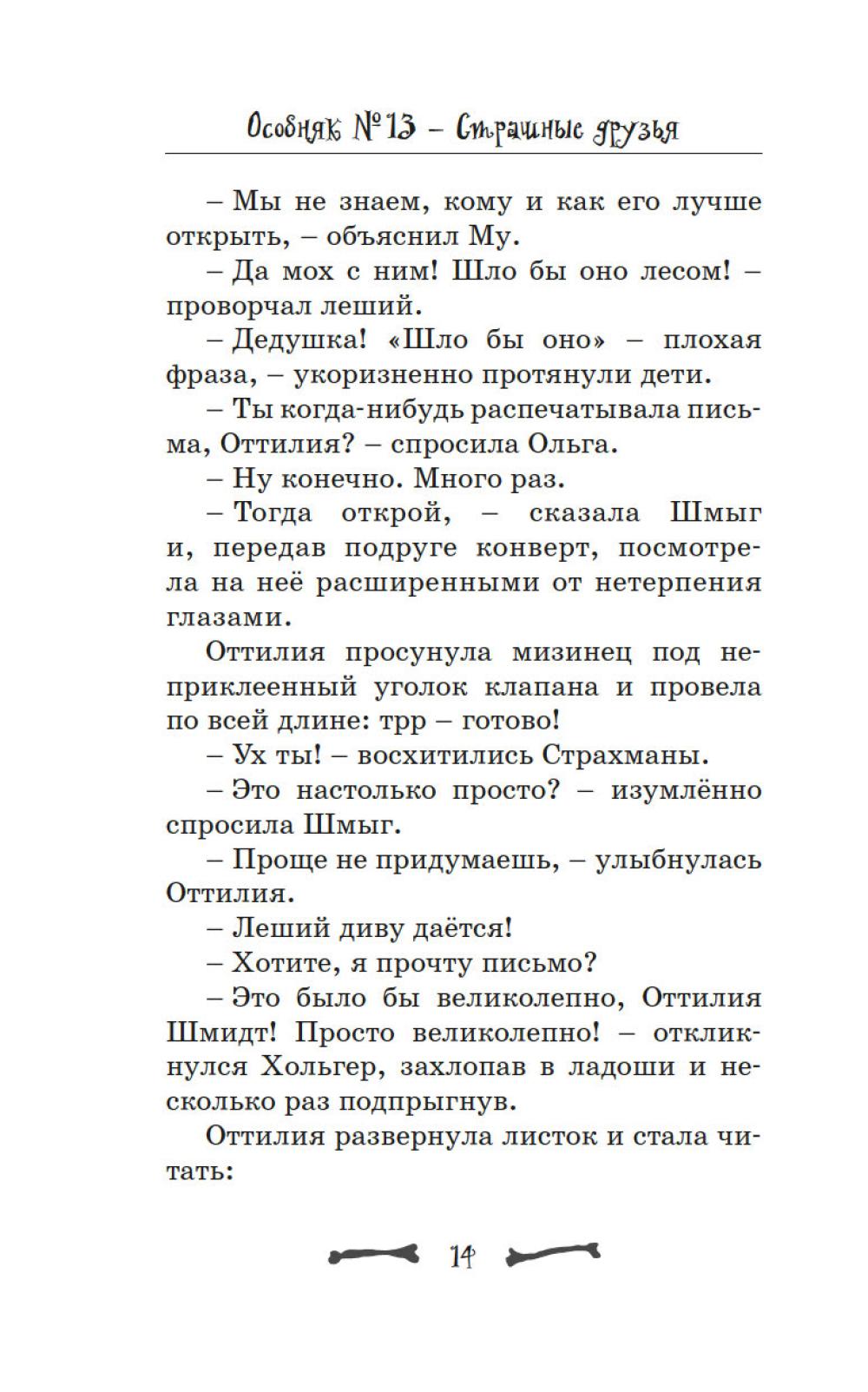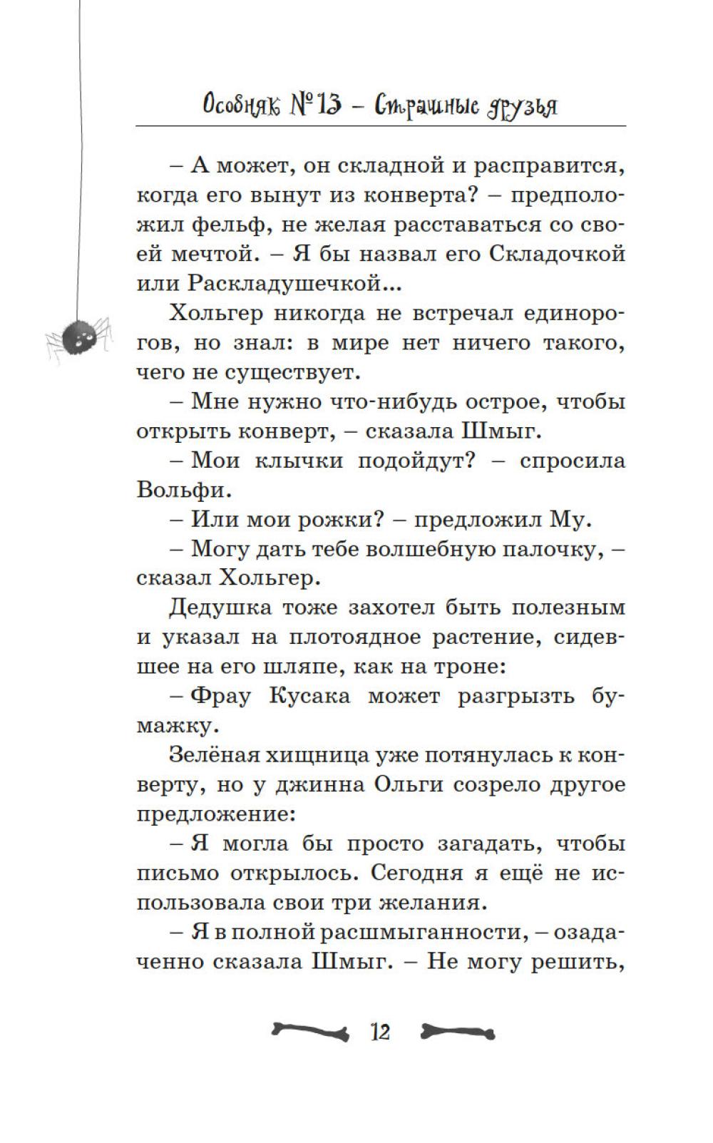 «ОСОБНЯК № 13» - ЭТО ЛЕГКИЕ МУРАШКИ, ВЕСЕЛЬЕ И ЦЕЛАЯ ГОРА ПРИКЛЮЧЕНИЙ! СТРАШНО ВЕСЕЛАЯ ИСТОРИЯ ДЛЯ ДЕТЕЙ,КОТОРЫЕ БОЯТСЯ СКУКИ, А НЕ МОНСТРОВ! Не успели Страхманы освоиться на новом месте, как ворона-шпионка приносит им письмо с очередным заданием. За тринадцать дней каждый из этой необычной семейки должен найти себе друга! Подружиться с кем-то - дело само по себе нелегкое, а если у тебя рожки, клыки или ты невидимка, то это просто невыполнимо. Но Страхманы не отчаиваются, ведь у них есть Оттилия! Она точно знает, где и как люди находят друзей.| Издательство | Махаон |