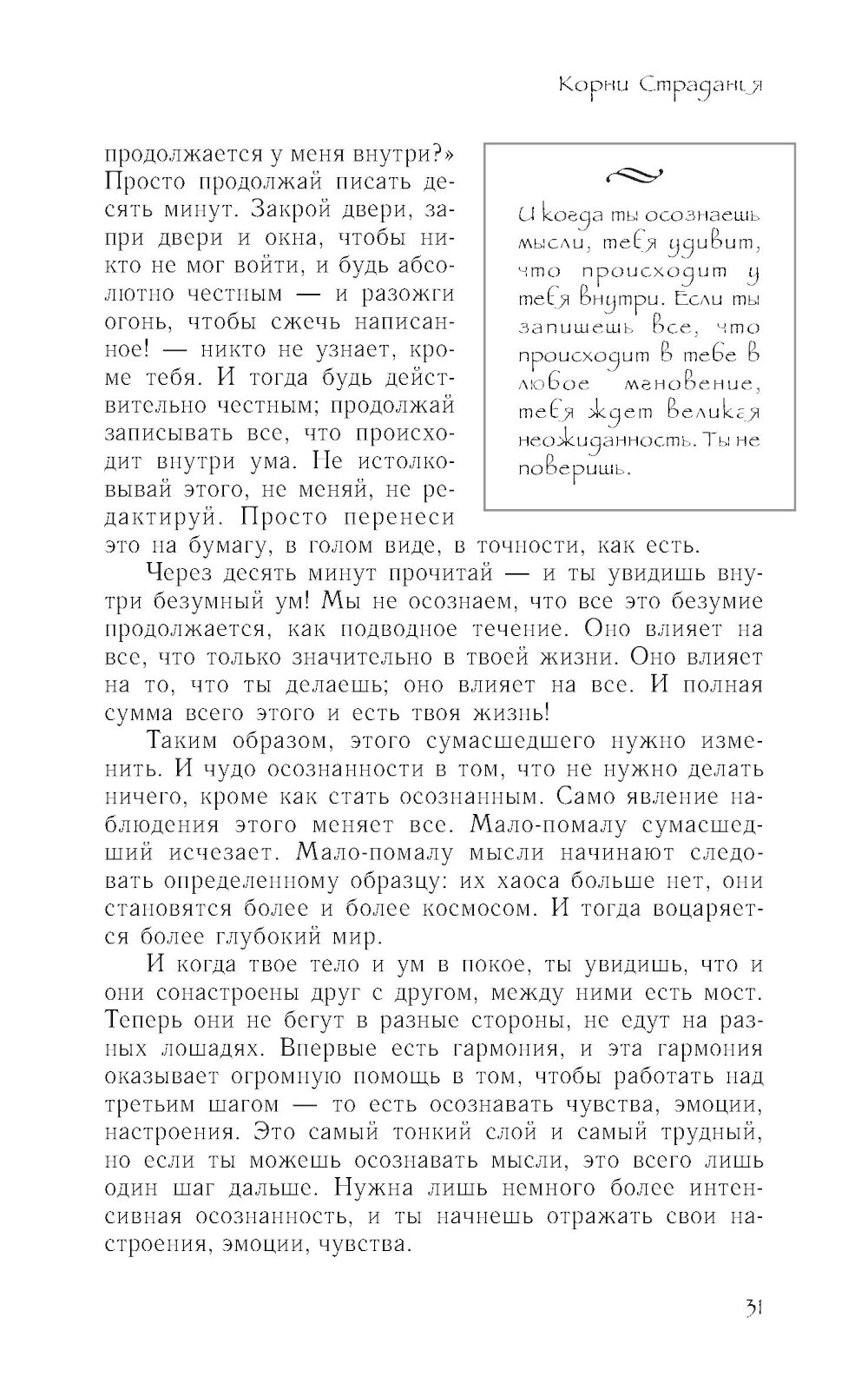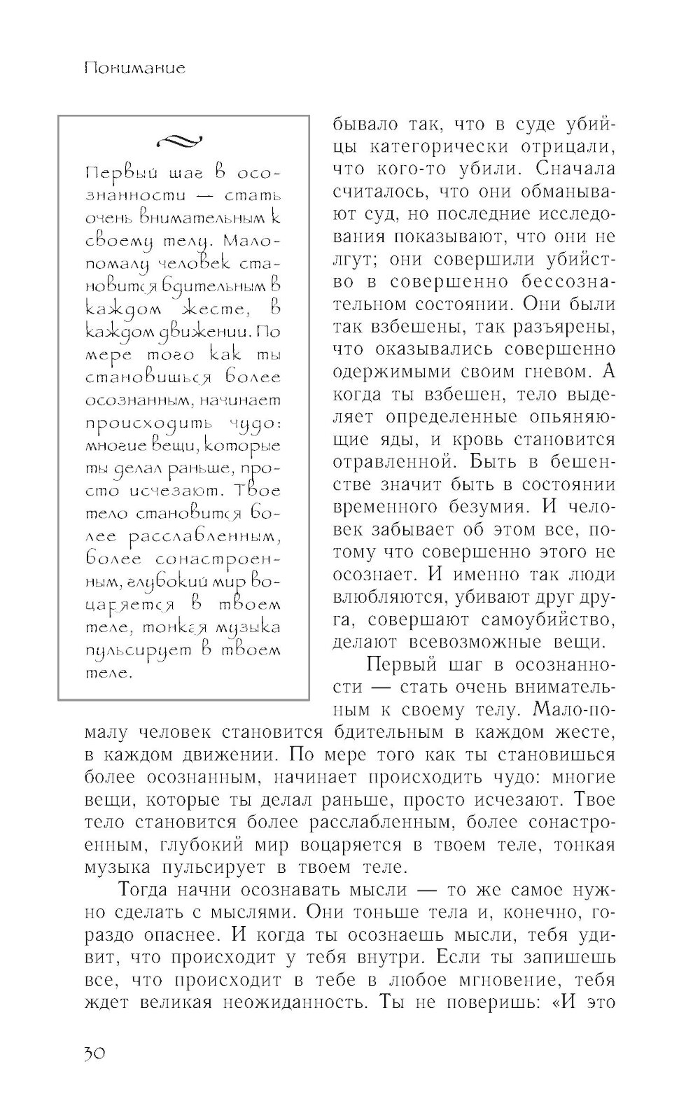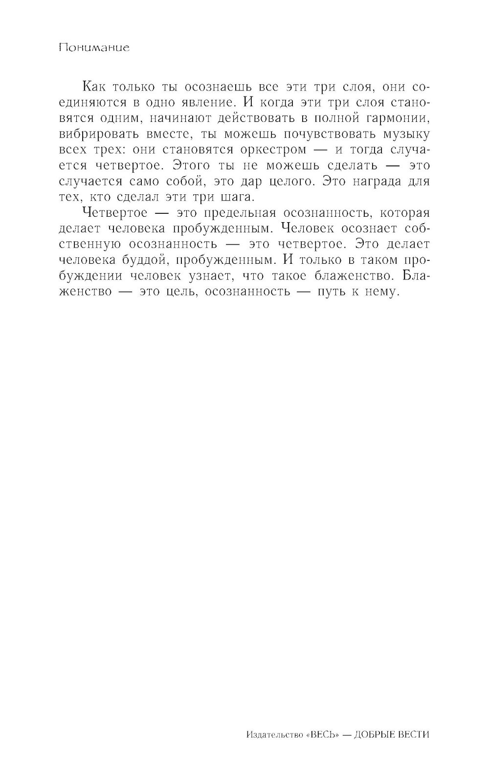 «Осознанность» - загадочное и таинственное понятие, которое упоминается во многих духовных учениях. Но что такое осознанность и почему она важна не только в духовном развитии, но и в обычной жизни? Каждый из вас переживал мгновения осознанности - когда время будто останавливается, и вы осознаете каждое движение, каждый звук, каждую мысль... Это состояние не просто «приятно» - оно может принести вам невероятную пользу: помочь реализовать ваши истинные желания, исцелиться, обрести мудрость для преодоления трудностей и принятия решений. В данной книге Ошо дает специальные техники на развитие осознанности и объясняет, как применять их наилучшим для себя образом. Работайте, говорите, ешьте - делайте все с полной осознанностью, и вы увидите в себе огромную перемену. Сам факт, что вы осознано живете, изменит все ваши действия.| Издательство | ИГ Весь |