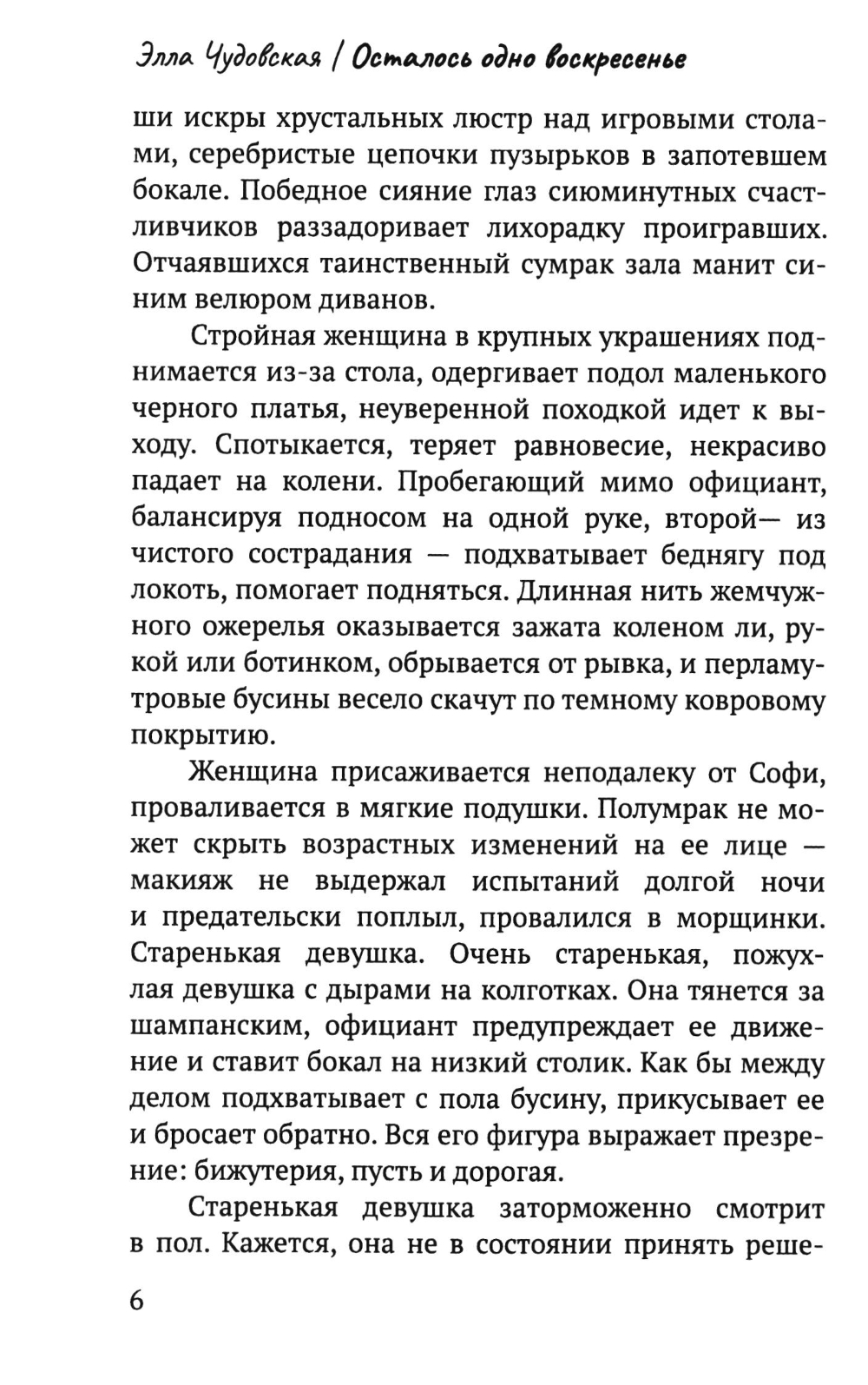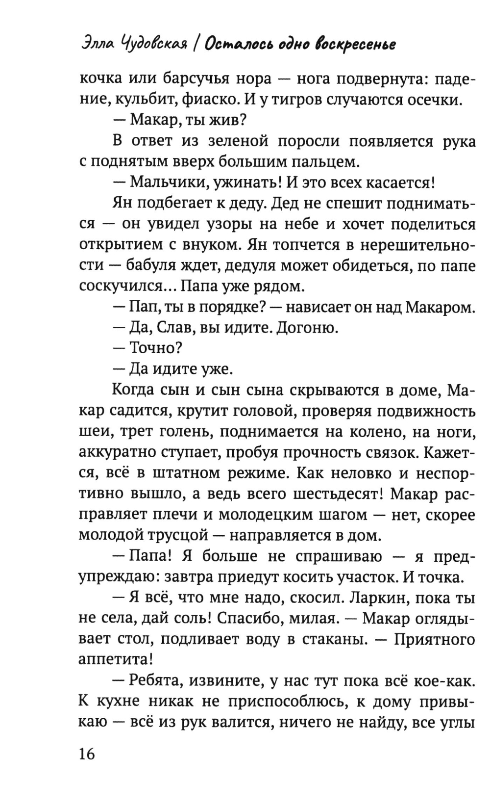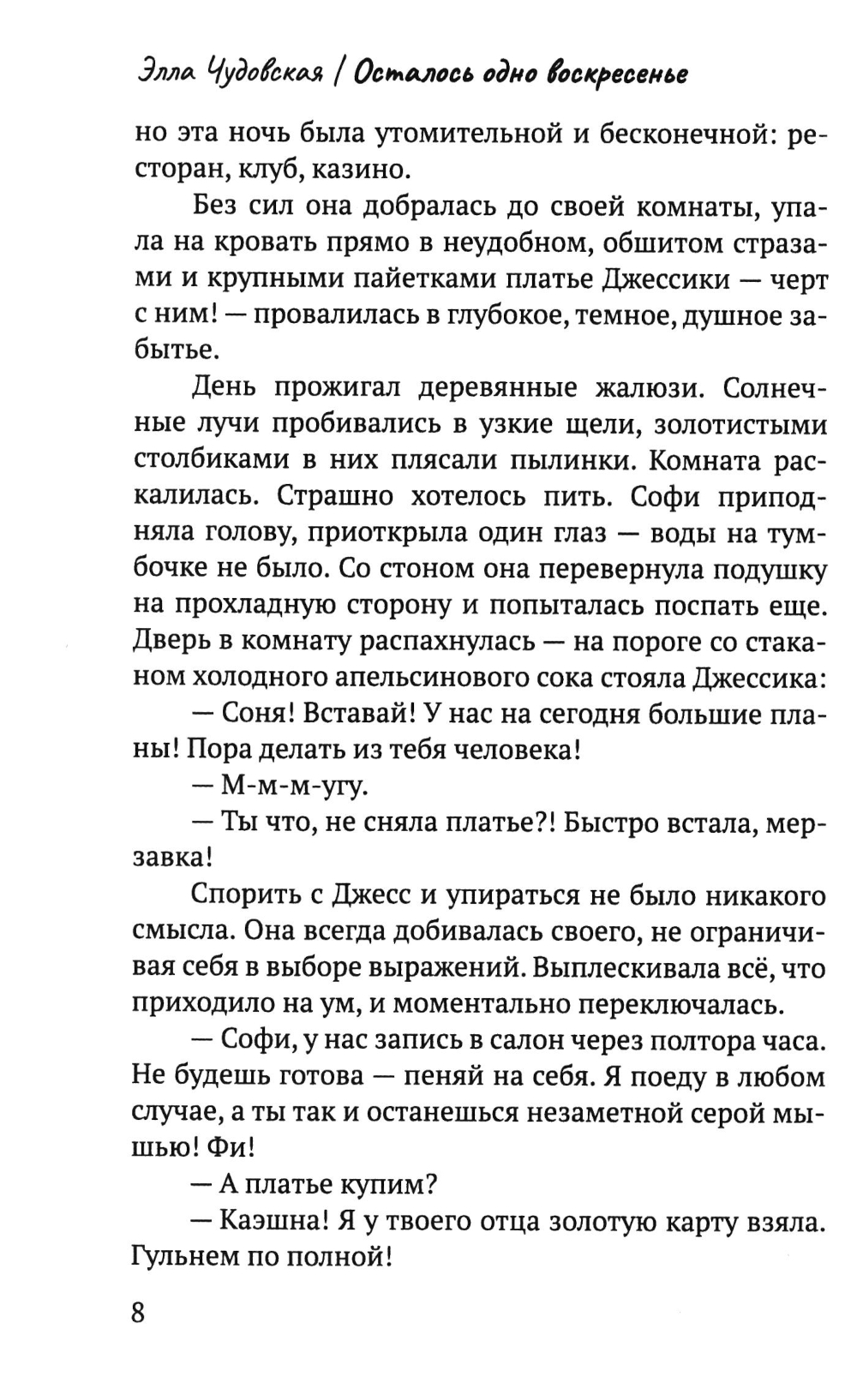 В декорациях острова, на фоне размеренной жизни семьи Макара, появляется девочка-подросток. Она отмечает течение времени воскресеньями, совершенно потеряна в странном взрослом мире полуправд и, кажется, никому не нужна. Единственный близкий человек ушёл, лучшая подруга отправила её в бан, мать занята своей жизнью, а с отцом ещё только предстоит познакомиться. Она хочет понравиться. Хочет спрятаться. Пытается не быть как все. Играет. Сквозные герои и место развития событий объединяют третью книгу автора с двумя предыдущими - «Синева» и «Совсем немного дождя». История продолжается. Стало ли ошибкой приобретение дома-мечты у самого синего моря? Кто заглядывает в окна по ночам? Что случится, когда придёт Зефир? Способны ли меняться взрослые? Кем предстанет Софи в последнее воскресенье лета?| Издательство | Рипол Классик |