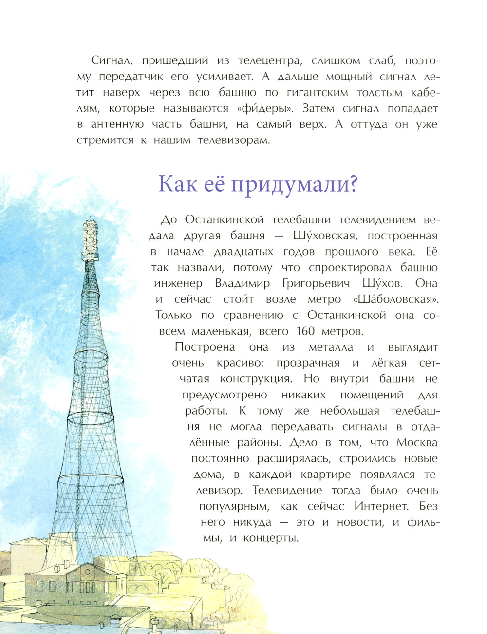Для чего была построена Останкинская телебашня? Кто и как её спроектировал? Зачем внутри проложены стальные тросы и что ещё находится внутри? Качается ли башня и почему она не падает? История Останкинской телебашни и ответы на все вопросы - в нашей увлекательной экскурсии по этому уникальному сооружению.| Издательство | Настя и Никита |