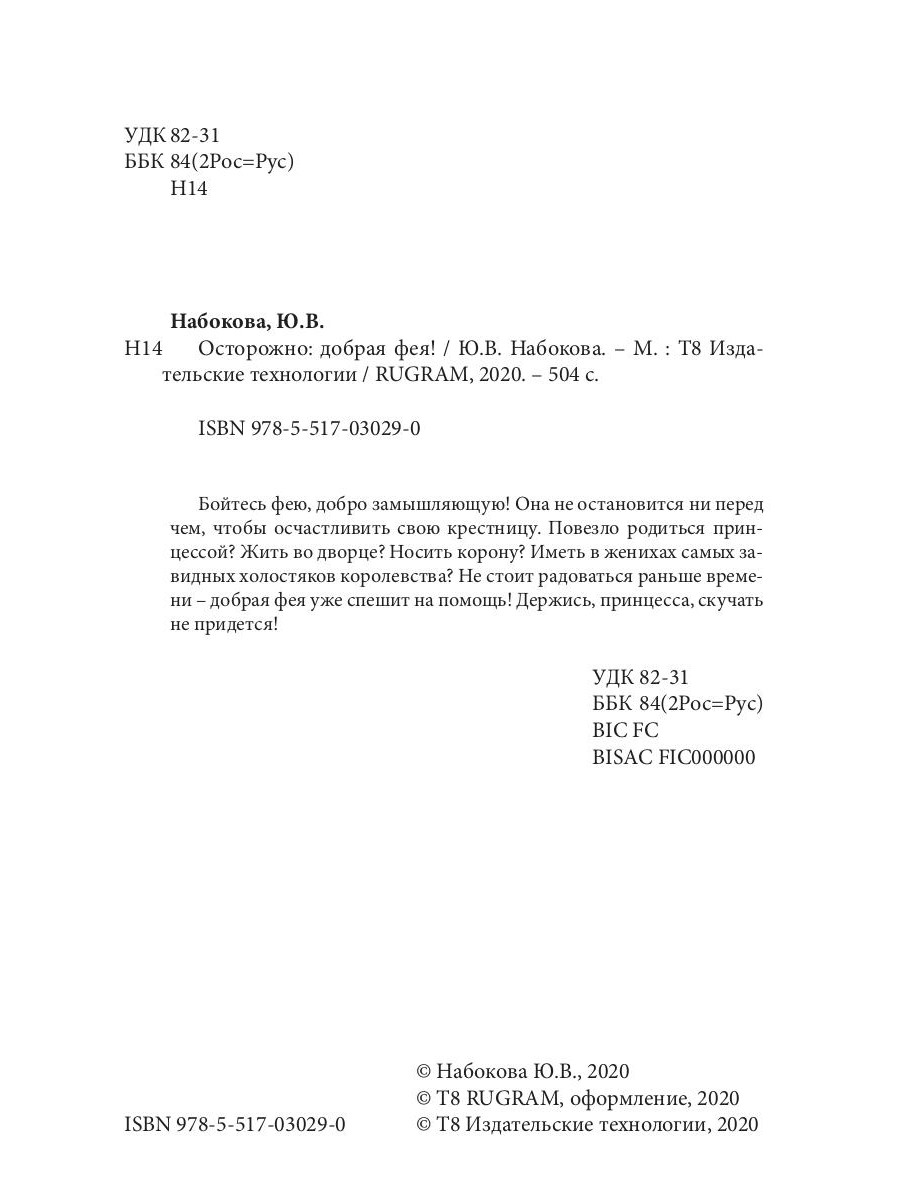 Бойтесь фею, добро замышляющую! Она не остановится ни перед чем, чтобы осчастливить свою крестницу. Повезло родиться принцессой? Жить во дворце? Носить корону? Иметь в женихах самых завидных холостяков королевства? Не стоит радоваться раньше времени - добрая фея уже спешит на помощь! Держись, принцесса, скучать не придется!| Издательство | Т8 RUGRAM |