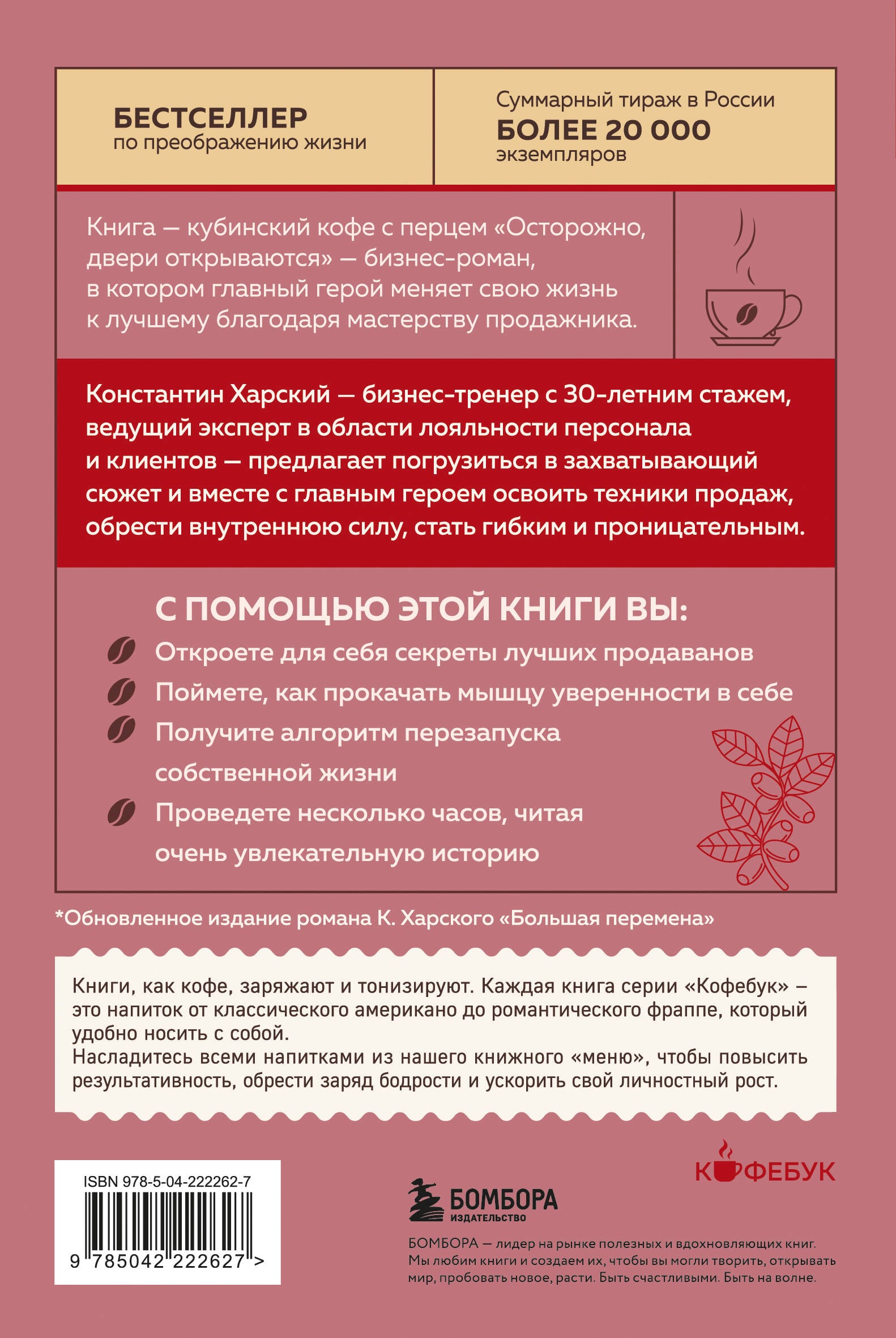 РОМАН-ТРЕНИНГ, СТАВШИЙ БЕСТСЕЛЛЕРОМ. Матвей не хватал звезд с неба. Работал обычным верстальщиком в издательстве и искренне не понимал, как люди умудряются сколачивать состояния. А потом произошло событие, заставившее его по-другому взглянуть на собственную жизнь. Он заключил пари, согласно которому должен заработать миллион за год. Но как это сделать, если твоя зарплата - 30 000 рублей в месяц? Выход один - сменить профессию. Главный герой осваивает техники продаж, обретает внутреннюю силу, учится быть гибким и проницательным. Эта книга - идеальный тренинг по преображению своей жизни с помощью мастерства продажника. Благодаря роману-тренингу Константина Харского вы: • откроете для себя секреты лучших продаванов; • поймете, как прокачать мышцу уверенности в себе; • получите алгоритм перезапуска собственной жизни; • проведете несколько часов, читая очень увлекательную историю. Константин Харский - бизнес-тренер с 30-летним стажем, ведущий эксперт в области лояльности персонала и клиентов. Автор концепций «Ценностное управление» и «На стороне клиента», методологии оценки полезности сотрудников. *Обновленное издание романа К. Харского «Большая перемена».