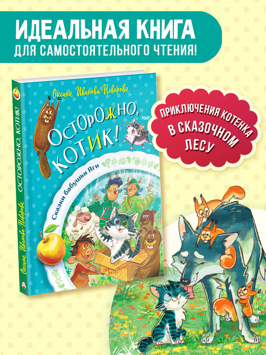 Оксана Иванова-Неверова - лауреат премий «Рукопись года» и «Большая сказка» им. Э. Н. Успенского, автор книг «Играют все!», «Приключения дракона и кота», «Страшно трусливая история». Если вы надеетесь найти что-то более забавное, милое и захватывающее, то у вас это вряд ли получится! Уморительно смешная и до удовольствия приятная история о загадочном появлении котёнка в сказочном лесу. В компании бесёнка Анчутки, водолеших, Клокастого Зайца, Заблудшей Овцы и, конечно, обаятельного котёнка Авося вы окунётесь в необычный мир сказочных существ. Под чутким руководством бобра научитесь с котёнком нырять, побываете на концерте болотной нечисти и даже услышите Вислозубого Гнилозуба, увидите русалку Алевтину, узнаете, почему нельзя есть ягоду-смердючку, и, самое важное, подготовитесь к встрече со страшным и таинственным… Волколаком! Невероятно добрая и весёлая сказка с яркими и прекрасными персонажами оставит исключительно приятное впечатление! Красочные и озорные иллюстрации Алисы Перкмини. Увлекательное чтение для детей старшего дошкольного и младшего школьного возраста. Идеальная книга для самостоятельного чтения. Прекрасный подарок любителю сказок и весёлых историй!| Издательство | Издательство "АСТ" |