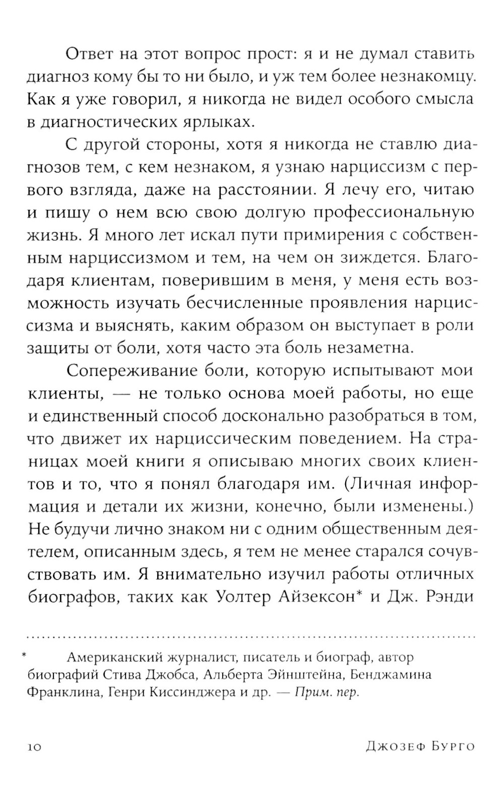 Эгоцентрики, все помыслы которых сосредоточены только на них самих, - вот кто такие нарциссы. Со стороны они часто кажутся нам яркими и интересными, но на самом деле это умелые и жестокие манипуляторы, готовые на все ради того, чтобы быть в центре внимания. Их бывает очень непросто распознать, но научиться делать это жизненно необходимо: общение с нарциссами может повредить вашей карьере, разрушить отношения с друзьями и близкими, подорвать здоровье. Что делать, если таким человеком оказался ваш родственник, начальник, друг или партнер? Автор книги рассказывает о правилах поведения с нарциссами любого типа: моралистами, мстителями, провокаторами и многими другими. Он анализирует наиболее распространенные поведенческие модели и дает рекомендации, как не поддаваться влиянию самовлюбленных типов.| Издательство | Альпина Паблишер |