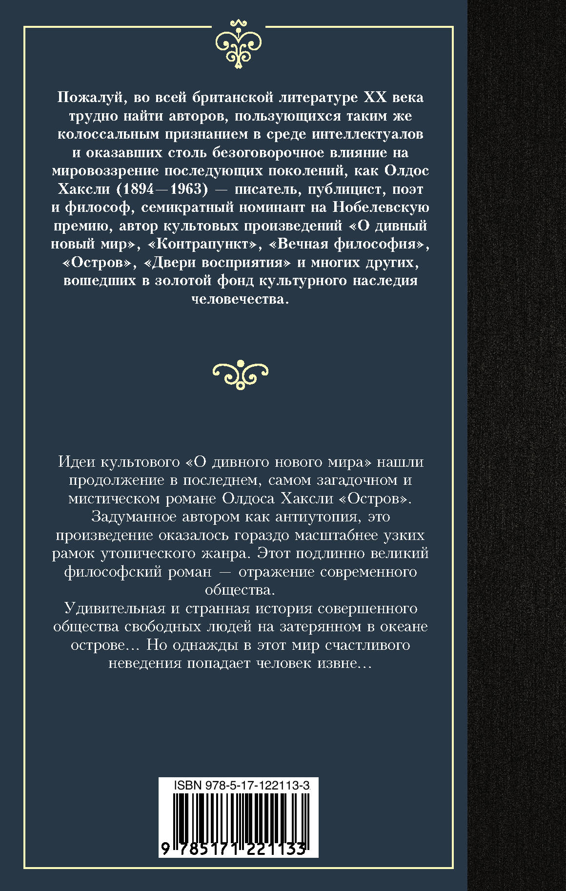 Идеи культового "О дивного нового мира" нашли продолжение в последнем, самом загадочном и мистическом романе Олдоса Хаксли "Остров". Задуманное автором как антиутопия, это произведение оказалось гораздо масштабнее узких рамок утопического жанра. Этот подлинно великий философский роман - отражение современного общества. Удивительная и странная история совершенного общества свободных людей на затерянном в океане острове… Но однажды в этот мир счастливого неведения попадает человек извне...| Издательство | ИЗДАТЕЛЬСТВО "АСТ" |