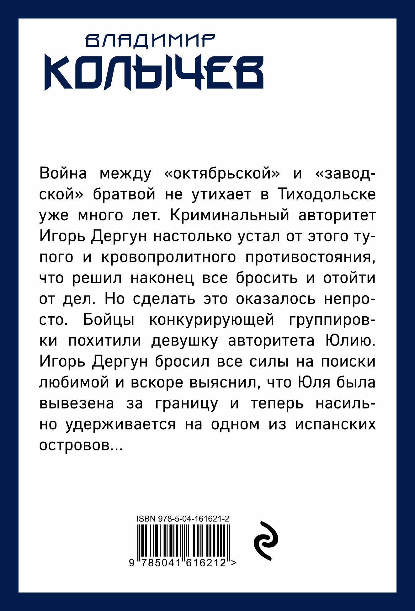 Война между «октябрьской» и «заводской» братвой не утихает в Тиходольске уже много лет. Криминальный авторитет Игорь Дергун настолько устал от этого тупого и кровопролитного противостояния, что решил наконец все бросить и отойти от дел. Но сделать это оказалось непросто. Бойцы конкурирующей группировки похитили девушку авторитета Юлию. Игорь Дергун бросил все силы на поиски любимой и вскоре выяснил, что Юля была вывезена за границу и теперь насильно удерживается на одном из испанских островов...| Издательство | Эксмо |