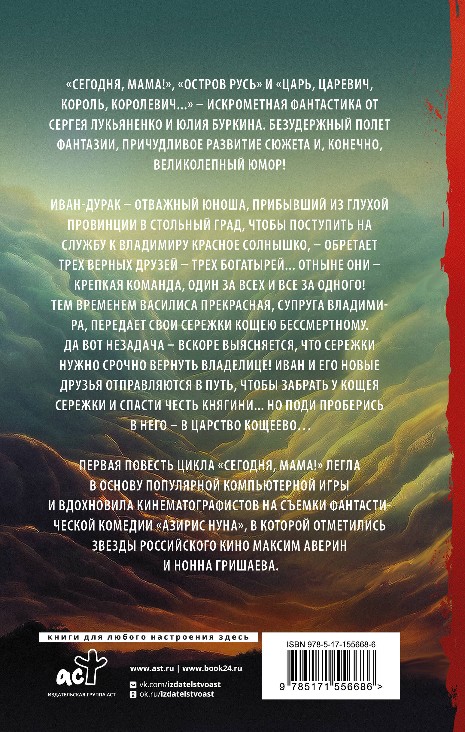 От автора бестселлеров «Ночной дозор» и «Черновик». Переиздание культового цикла. Вся трилогия под одной обложкой. Древний Египет и Антарктида, богатыри и сфинксы, Кощей и Шерлок Холмс ждут наших героев на пути по далёким планетам и невиданным мирам. Смогут ли они найти дорогу домой в удивительной, наполненной магией реальности? «Сегодня, мама!», «Остров Русь» и «Царь, царевич, король, королевич...» - искрометная фантастика от Сергея Лукьяненко и Юлия Буркина.| Издательство | ИЗДАТЕЛЬСТВО "АСТ" |