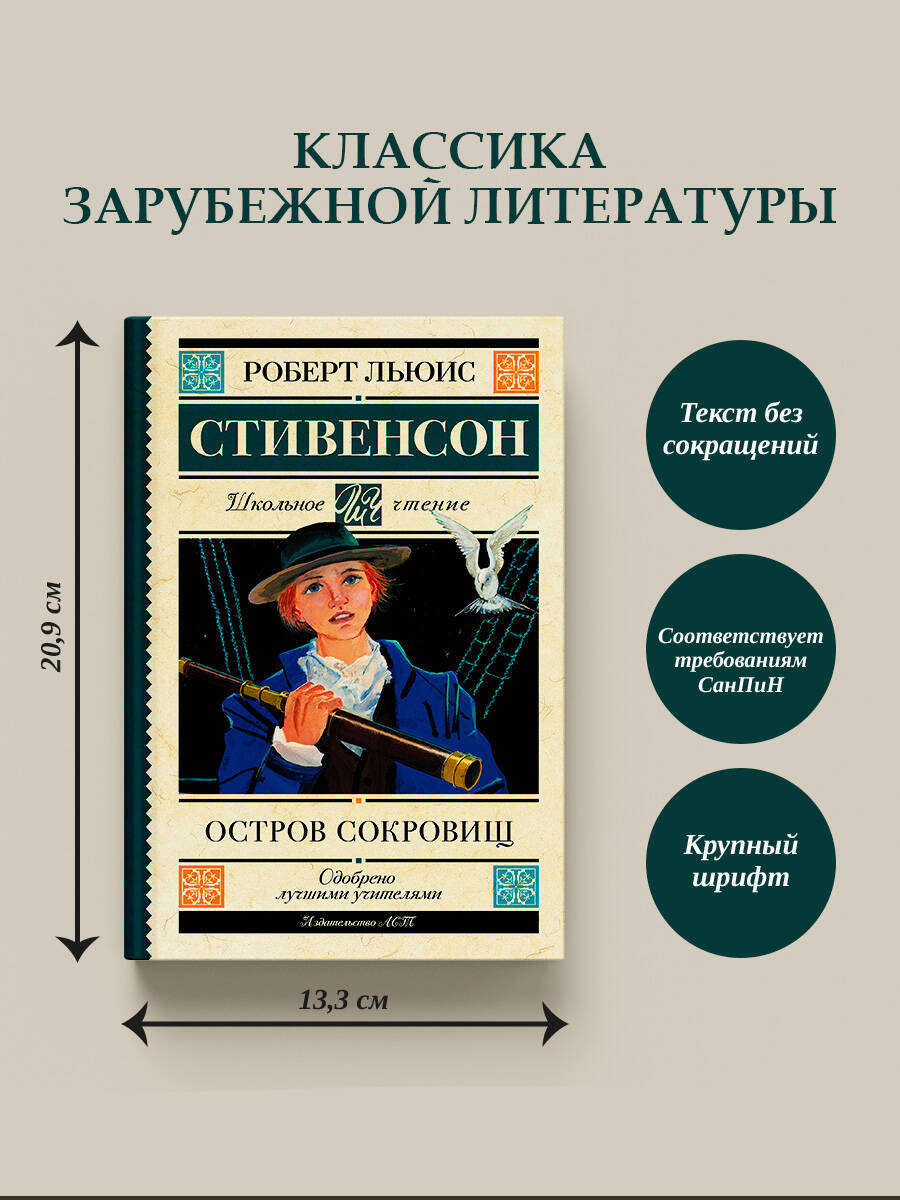 Вперед, за сокровищами и приключениями! Йо-хо-хо! Это будет опасное путешествие! Перед вами один из самых захватывающих романов знаменитого шотландского писателя, поэта и путешественника Роберта Льюиса Стивенсона. Когда-то отважный пират Флинт зарыл на далеком острове бесценные сокровища. Теперь команда смельчаков собирается найти заветный сундук, воспользовавшись картой Флинта. Но во время плавания выясняется, что на корабль проникла банда отъявленных головорезов, которые тоже охотятся за кладом. Благородство и великодушие противостоят в романе злу, насилию и коварству. Повествование ведется от лица мальчика Джима, поэтому читать книгу детям вдвойне интересно - с головой погружаясь в сюжет, они ассоциируют себя с образом главного героя. В серию «Классика для школьников» включены лучшие произведения отечественной и зарубежной литературы, входящие в школьную программу с 1 по 11 класс и в списки дошкольного чтения. Книги в твердом переплете сделают знакомство с литературой легким и увлекательным. Серия, которая не ударит по семейному бюджету и поможет юному читателю расти нравственно и интеллектуально!| Издательство | АСТ |