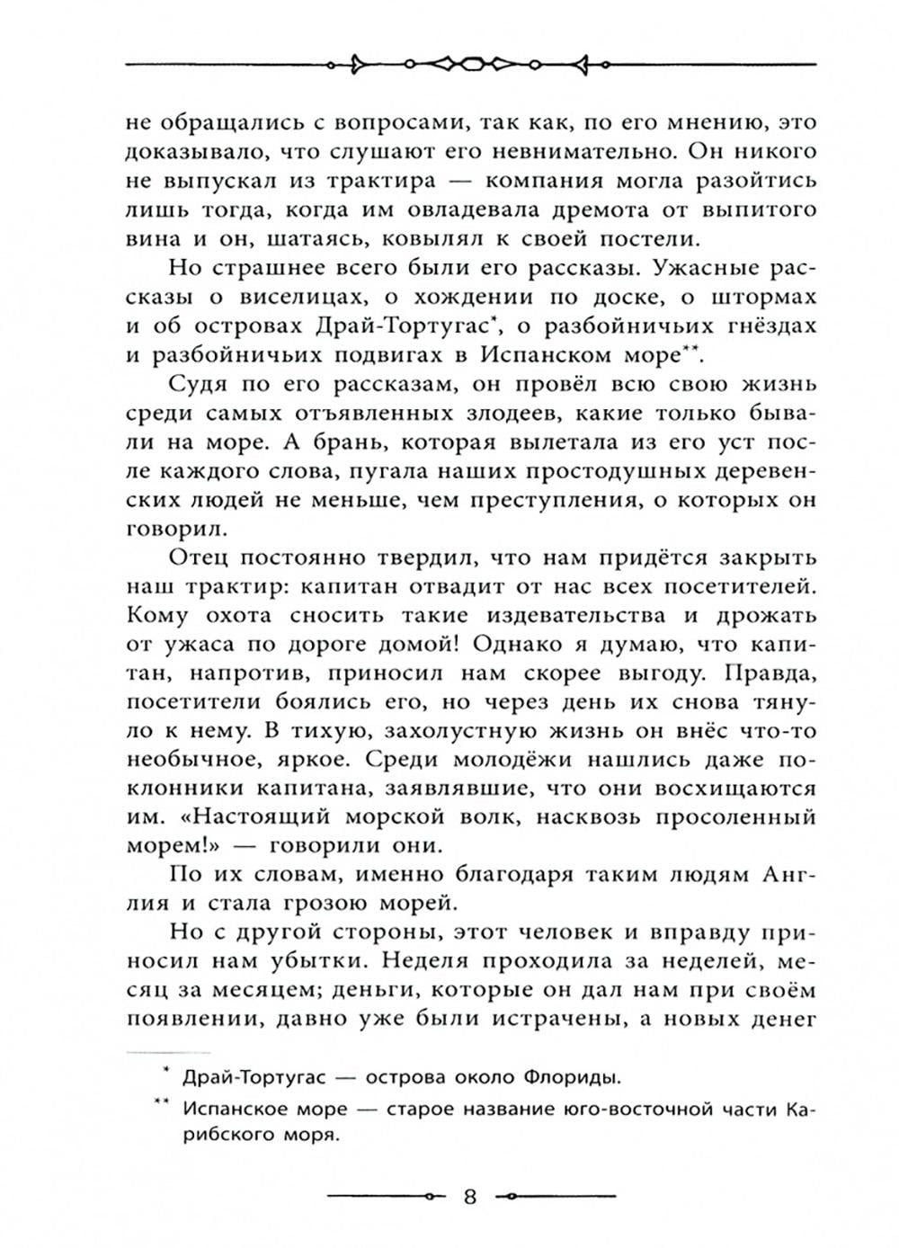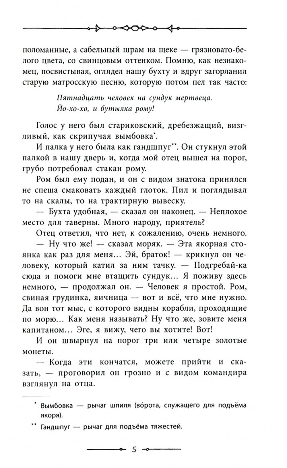 В трактире «Адмирал Бенбоу» умирает старый моряк Билли Бонс, и в его сундуке сын трактирщика находит карту острова, где зарыл пиратские сокровища капитан Флинт. Вместе с доктором Ливси и сквайром Трелони мальчик отправляется на поиски сокровищ - решено в кратчайшие сроки снарядить корабль. И тут - какая удача! - сквайр случайно встречает одноногого кока, который помогает ему быстро набрать команду отчаянных моряков. Иллюстрации американского художника Луи Рида.