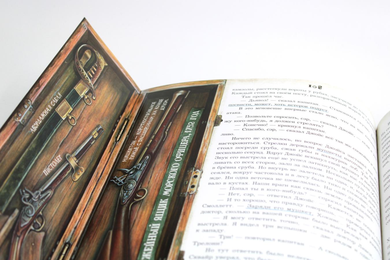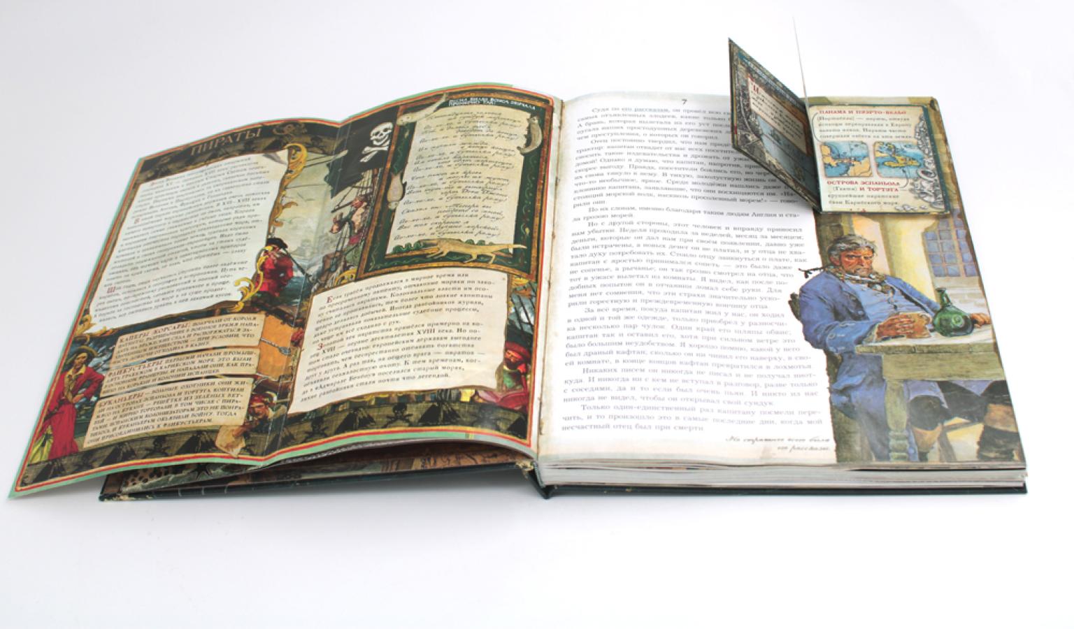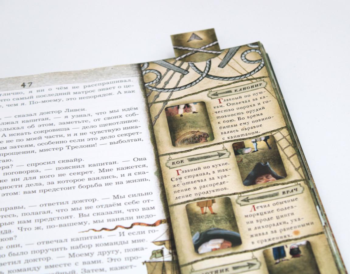 Знаменитый роман Роберта Льюиса Стивенсона в сопровождении подробного историко-бытового комментария, посвященного морскому делу в Англии XVIII века и «золотому веку» пиратства. Рисунки, гравюры, карты, страницы из книг того времени, интерактивные элементы помогают воссоздать живую атмосферу эпохи.| Издательство | Изд. Лабиринт Пресс |