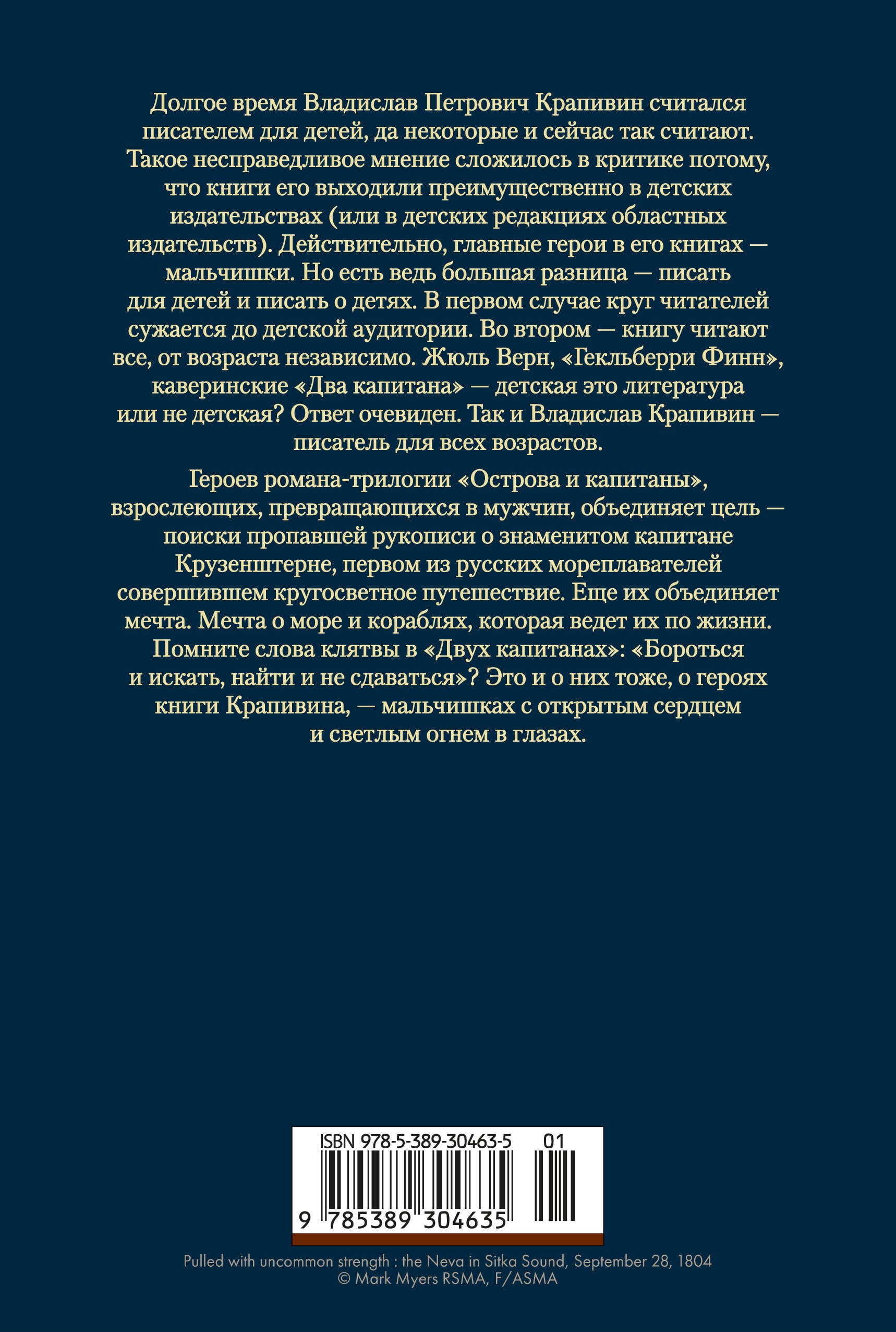 Долгое время Владислав Петрович Крапивин считался писателем для детей, да некоторые и сейчас так считают. Такое несправедливое мнение сложилось в критике потому, что книги его выходили преимущественно в детских издательствах (или в детских редакциях областных издательств). Действительно, главные герои в его книгах мальчишки. Но есть ведь большая разница - писать для детей и писать о детях. В первом случае круг читателей сужается до детской аудитории. Во втором - книгу читают все, от возраста независимо. Жюль Верн, «Гекльберри Финн», каверинские «Два капитана» - детская это литература или не детская? Ответ очевиден. Так и Владислав Крапивин - писатель для всех возрастов. Героев романа-трилогии «Острова и капитаны», взрослеющих, превращающихся в мужчин, объединяет цель - поиски пропавшей рукописи о знаменитом капитане Крузенштерне, первом из русских мореплавателей совершившем кругосветное путешествие. Еще их объединяет мечта. Мечта о море и кораблях, которая ведет их по жизни. Помните слова клятвы в «Двух капитанах»: «Бороться и искать, найти и не сдаваться»? Это и о них тоже, о героях книги Крапивина, - мальчишках с открытым сердцем и светлым огнем в глазах. Книги Крапивина - золотой фонд нашей литературы, круг его читателей очень широк, это и дети и взрослые, не утратившие в себе духа романтики.| Издательство | Издательство АЗБУКА ООО |