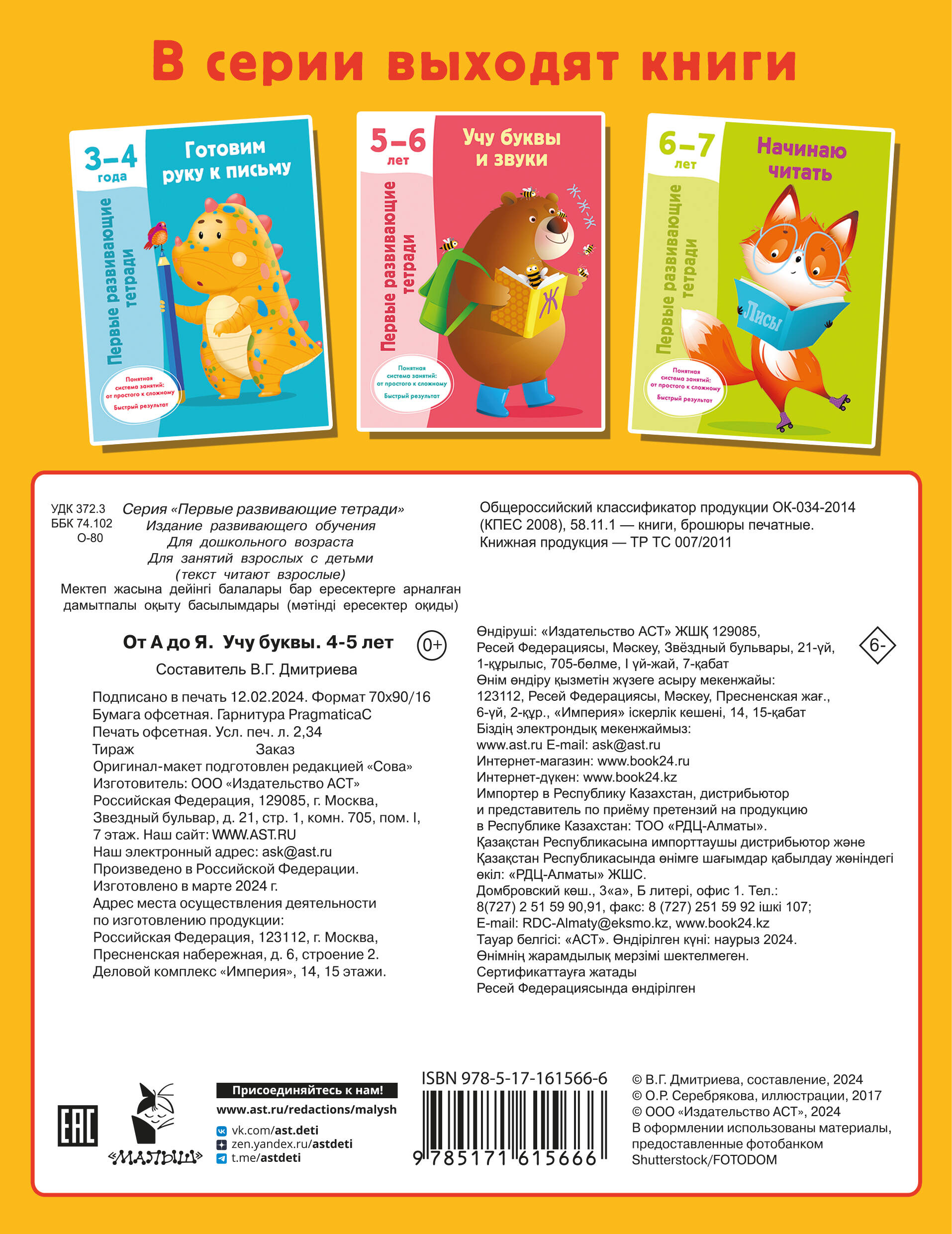 Аннотация: От А до Я. Учу буквы. 4-5 лет