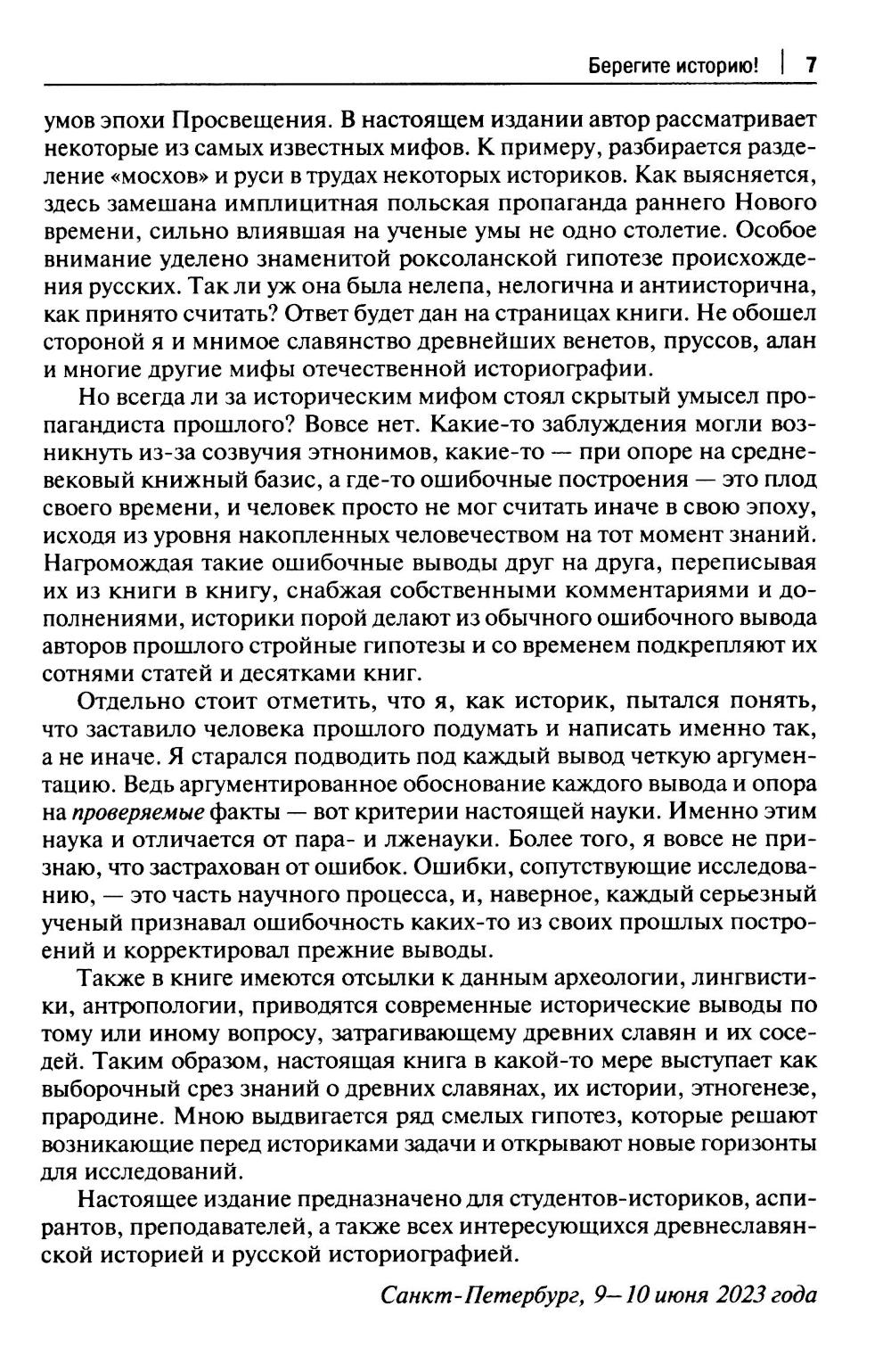 В монографии разбираются и рассматриваются через призму современных знаний все упоминания древних славян в работах отечественных историков последней трети XVII - середины XVIII века. Речь идет о «Киевском Синопсисе», «Скифской истории» Андрея Лызлова, «Ядре Российской истории» Андрея Манкиева, «Подробной летописи от начала России до Полтавской баталии» Феофана Прокоповича, статьях историка Готлиба Байера, книгах Василия Татищева и Михаила Ломоносова. Попутно анализируются многие мифы историографии (славянское происхождение венетов, широкое в прошлом расселение финских племен в Восточной Европе, «московитский миф» и др.). В книге имеются многочисленные отсылки к данным археологии, лингвистики, антропологии, приводятся современные исторические выводы по тому или иному вопросу, затрагивающему древних славян и их соседей. Настоящее издание можно назвать выборочным срезом знаний о древних славянах, их истории, этногенезе, предполагаемой прародине. Автор выдвигает ряд смелых гипотез, которые решают возникающие перед историками задачи и открывают новые горизонты для исследований. Книга предназначена для студентов, аспирантов, преподавателей и широкого круга читателей, интересующихся древнеславянской историей и русской историографией.| Издательство | Проспект |
