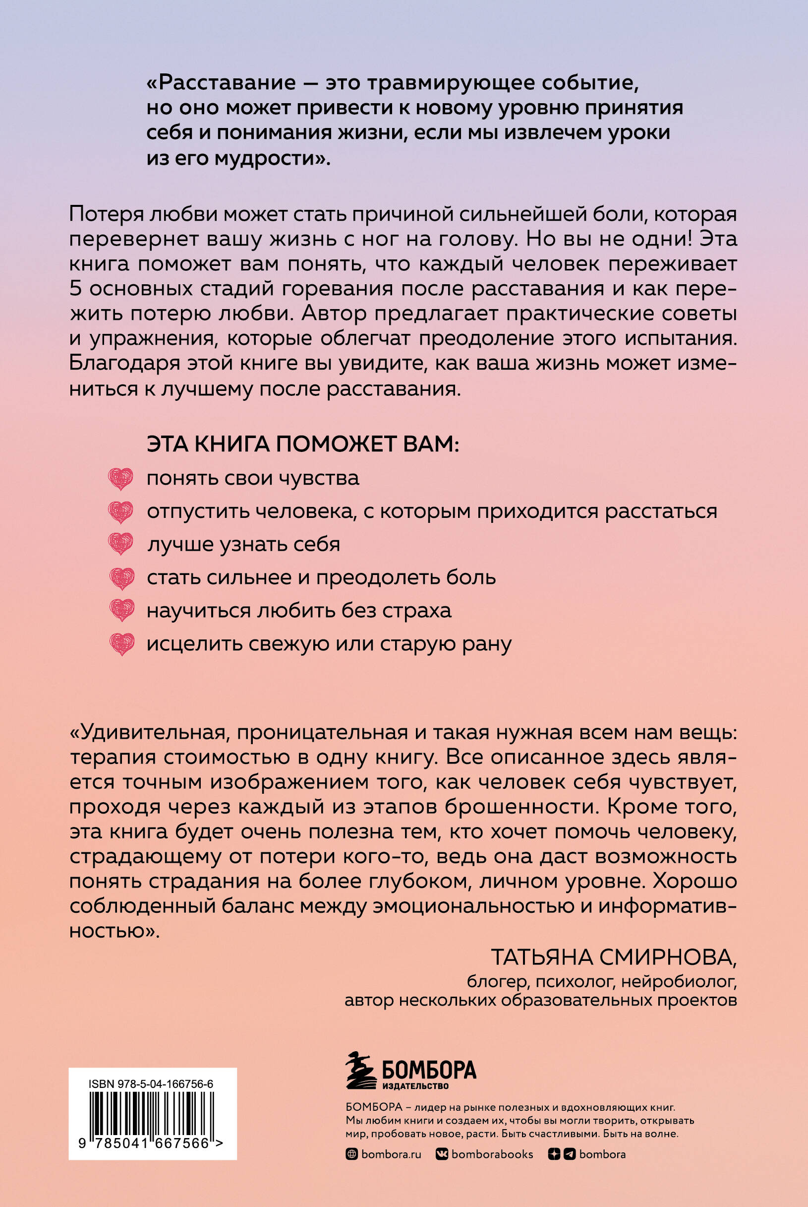 Конец отношений часто кажется концом света. Психологи говорят, что горе от расставания проживается так же тяжело, как смерть близкого. Эта книга - проводник по пяти стадиям горевания, которые сопровождают потерю любви. Автор глубоко погружается в психологию процесса разрыва отношений и показывает, как преодолеть трудное время в своей жизни. Психотерапевт Сьюзен Андерсон делится советами о том, как переживать горе и болезненные изменения в жизни, будь это расставание с любимым человеком, измена, смерть близкого или потеря работы. Вы найдете в книге не только практические инструкции, но и личный опыт автора, а также реальные примеры из жизни, что позволяет более глубоко вникнуть в материал. Эта книга поможет вам: - понять свои чувства; - отпустить человека, с которым приходится расстаться; - лучше узнать себя; - стать сильнее и преодолеть боль; - научиться любить без страха. Книга будет интересна тем, кто хочет пережить кризис в отношениях и выйти на новый этап жизни исцелившимся.| Издательство | ООО "Издательство "Эксмо" |