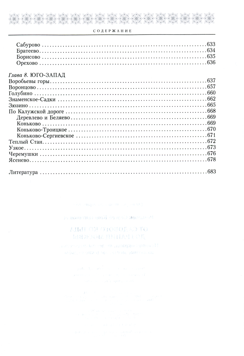 Известный москвовед Сергей Константинович Романюк рассказывает читателю историю московских сел и слобод, которыми прирастала столица. Первая часть повествования поведает о территории от Садового кольца до Камер-Коллежского вала, который был в продолжение более чем ста лет границей города. Описание начинается с местности в излучине Москвы-реки, с Хамовной слободы, и продолжается по часовой стрелке, заканчиваясь Калужской дорогой. Говорится о прошлом этих мест, о шедеврах зодчества и о зданиях, которые не столь на виду, о людях забытых, но славных в истории города. Вторая часть описывает местности от Камер-Коллежского вала и до границ города в конце XX века. Здесь сохранились широко известные великолепные дворцы, украшающие знаменитые усадьбы - Кунцево Нарышкиных, Останкино и Кусково Шереметевых, Люблино Дурасовых, царские Коломенское и Царицыно... От многих сел и усадеб остались лишь церковные здания, и часто это прекрасные образцы архитектуры - Покровская церковь в Филях, Знаменская в Перове, Троицкая в Троице-Голенищеве... За последние годы Москва стремительно меняется, а книга написана около тридцати лет назад, но тем не менее за это время никто не сделал более подробного описания местностей за Садовым кольцом, чем автор. Поэтому книга уникальна и рекомендуется самому широкому кругу читателей, интересующихся историей Москвы.| Издательство | Центрполиграф |