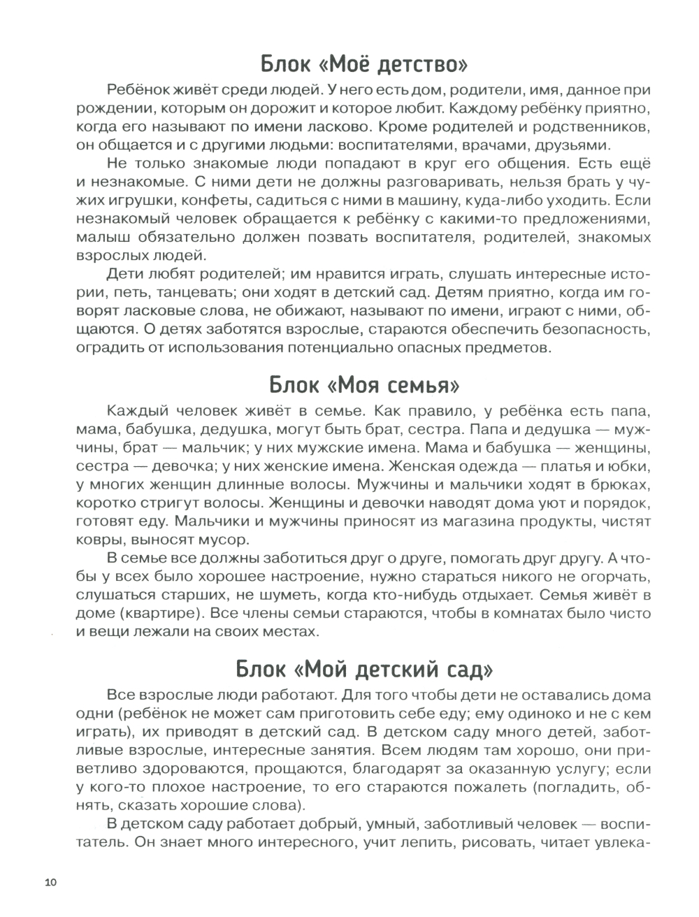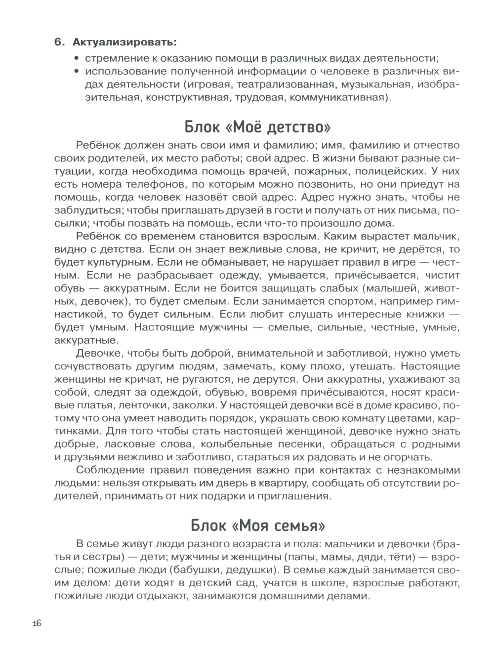 Программа посвящена актуальным вопросам патриотического воспитания и формирования духовно-нравственных ценностей детей дошкольного возраста. Она уделяет внимание нормам поведения ребёнка в обществе, на транспорте, при общении с незнакомцами, учит правильно реагировать на эмоциональное состояние окружающих, внимательно относиться к родственникам и сверстникам, к семье и семейным ценностям, быть терпимым к представителям других национальностей, любить родной город, страну, природу, а также знакомит с русской национальной культурой и культурой других народов.| Издательство | Просвещение |