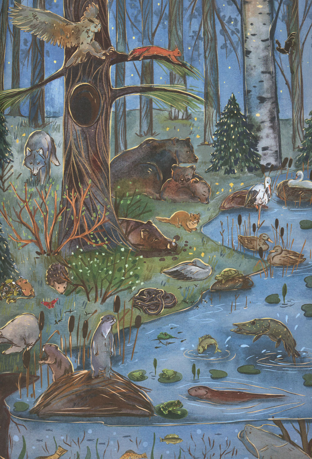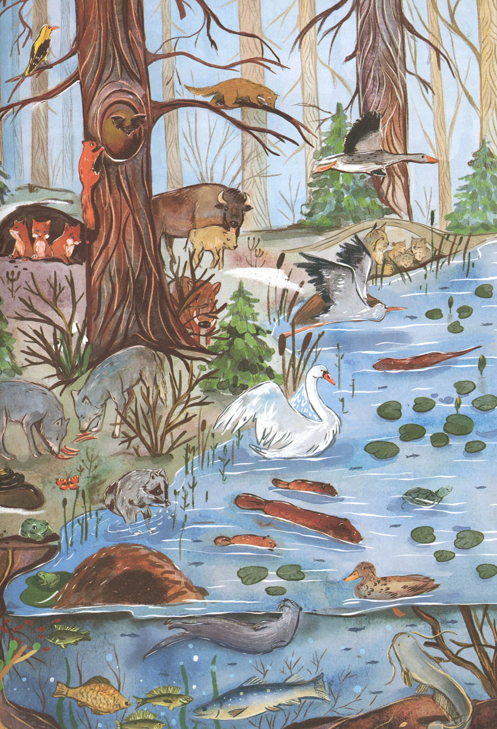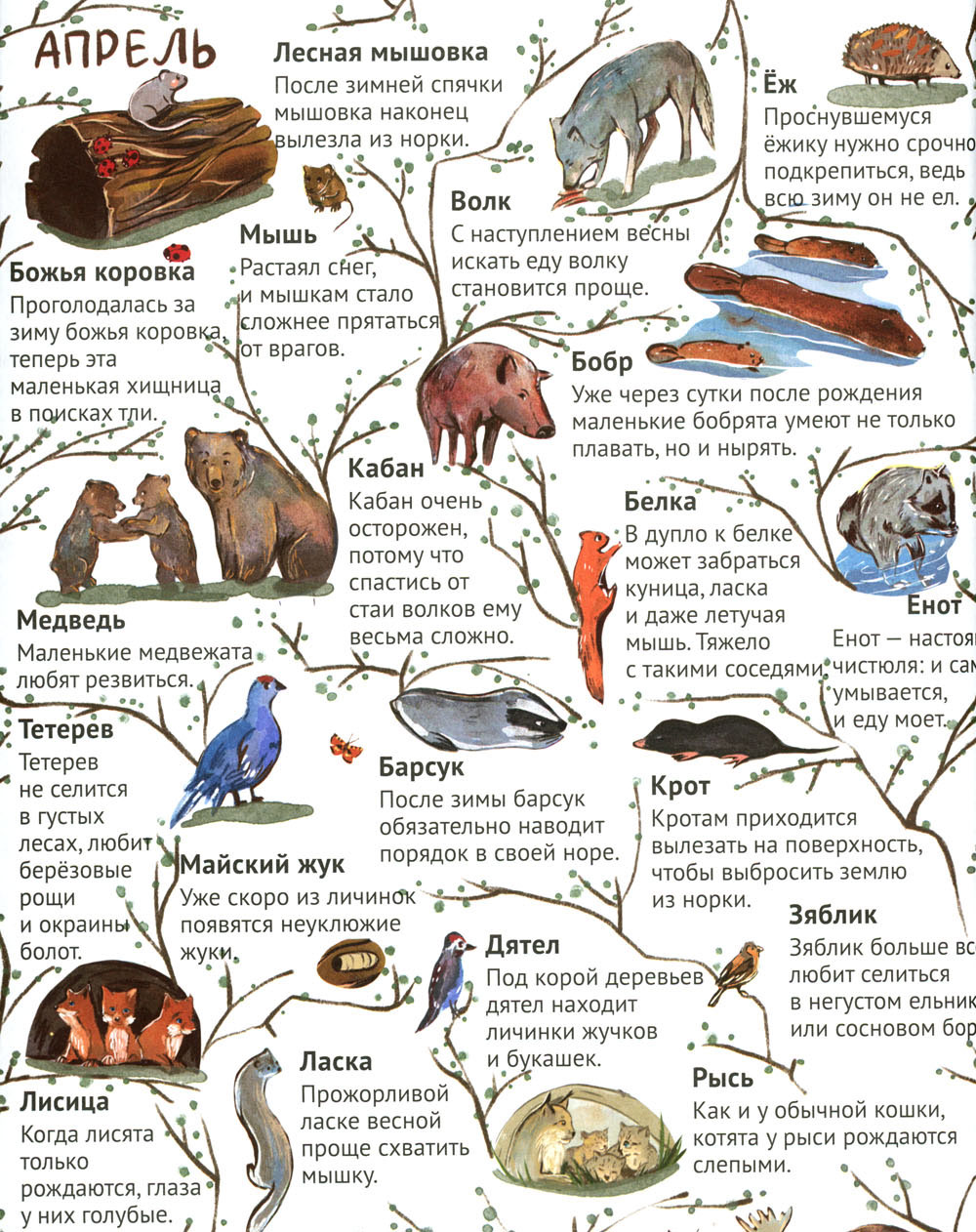 Как звери общаются, чем питаются и как спасаются от врагов? Кто впадает в спячку зимой, а кто улетает в теплые края? Добро пожаловать в удивительный мир дикого леса! Эта познавательная книга расскажет о жизни лесных обитателей - животных, птиц, рыб и насекомых. Увлекательные факты о поведении зверей помогут ребёнку лучше понять окружающий мир и сделать новые открытия. Узнайте, как меняется образ жизни животных в зависимости от времени года, и попробуйте найти на детальных иллюстрациях спрятанных художником животных - это не только весёлое, но и полезное занятие!| Издательство | Доброе детство |
