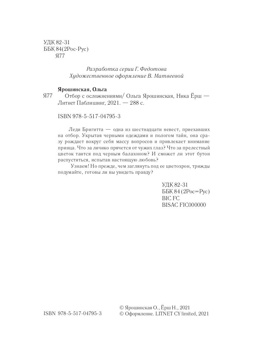Леди Бригитта - одна из шестнадцати невест, приехавших на отбор. Укрытая черными одеждами и пологом тайн, она сразу рождает вокруг себя массу вопросов и привлекает внимание принца. Что за личико прячется от чужих глаз? Что за прелестный цветок таится под черным балахоном? И сможет ли этот бутон распуститься, испытав настоящую любовь?