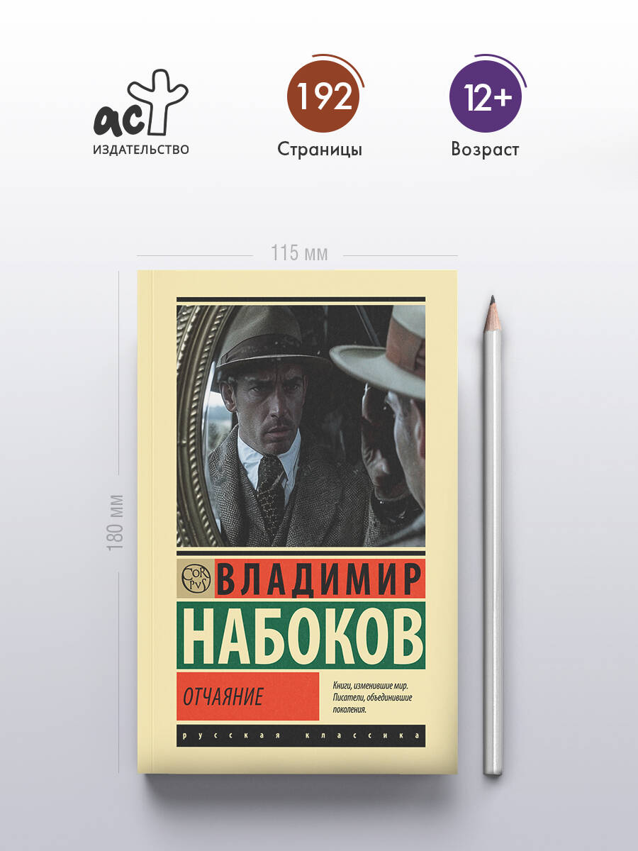 "Отчаяние" (1934) - шестой роман Владимира Набокова, написанный в Берлине, и его третий, после "Короля, дамы, валета" и "Камеры обскура", психологически-криминальный роман, отвергающий условности этого жанра. Герман, берлинский коммерсант русско-немецкого происхождения, убежденный в своей гениальности, замышляет преступление, которое, подобно произведению искусства, должно стать шедевром изобретательности и безупречности исполнения. Жизнь, однако, оказывается намного остроумнее и художественней порочного замысла, кривое зеркало которого лишь искажает реальность. Форма повествования от первого лица, вера героя-рассказчика в собственную исключительность и блистательный слог сближают "Отчаяние" с написанной двадцать лет спустя "Лолитой".| Издательство | Издательство "АСТ" |